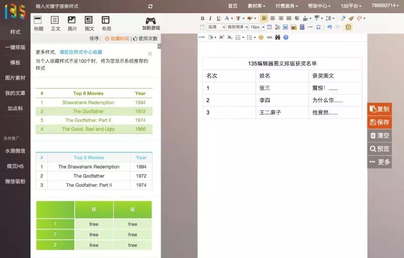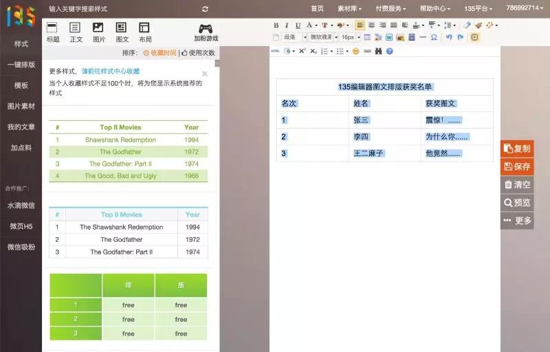 135编辑器里有各种各样的表格样式,能满足众多小编的美化表格的需求。