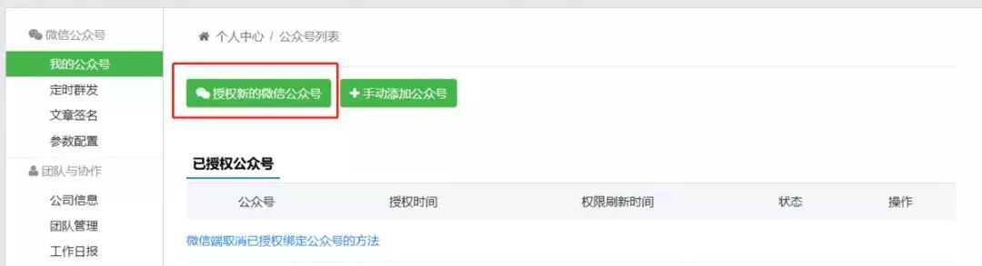 ▼点击授权新的公众号
