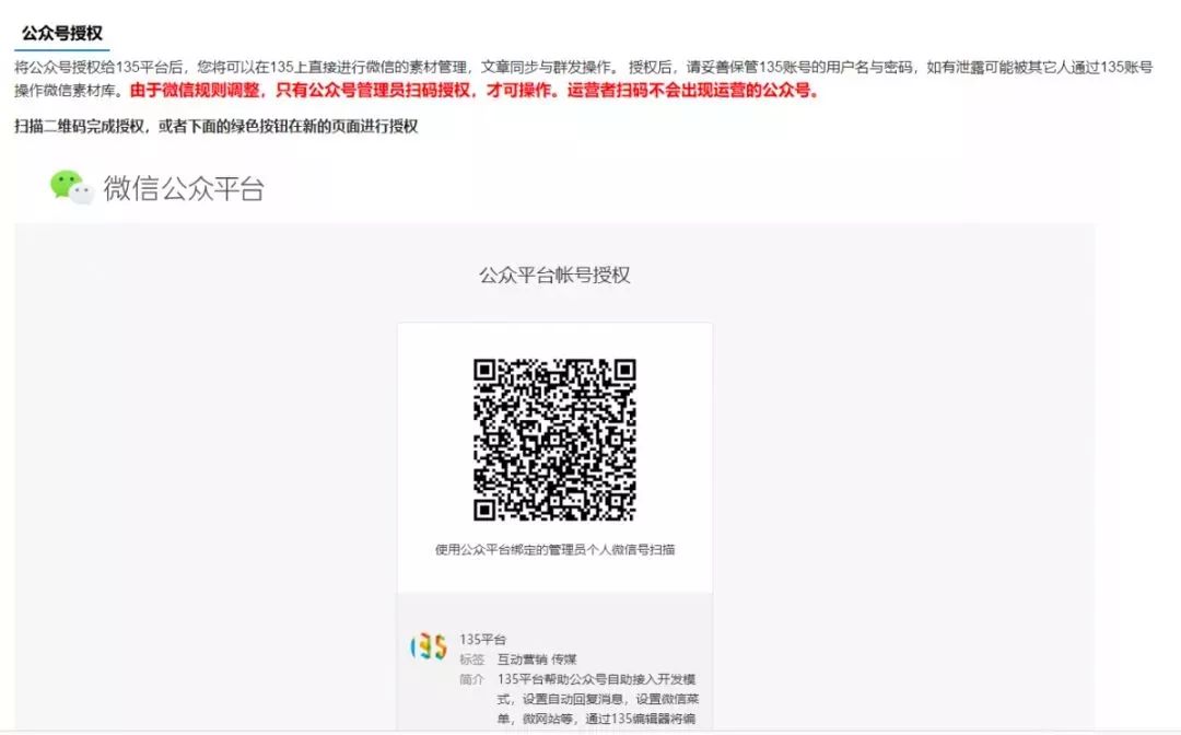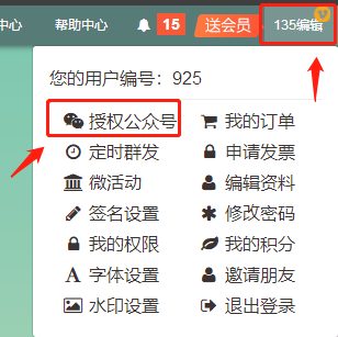 ▼登录135账户,点击【授权公众号】