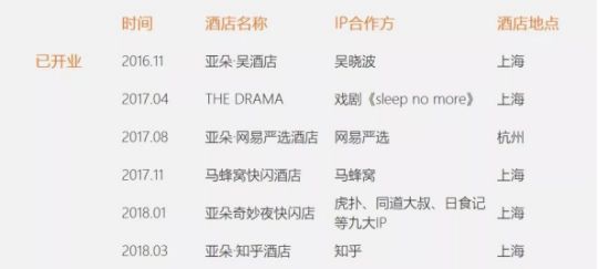 亚朵创始人兼CEO耶律胤指出,在2018年,亚朵将与更多的优秀IP一起,打造契合更多细分人群、内容更加丰富、服务更加优质的新住宿空间,开业酒店数将达到300家。以下是两年来,亚朵IP酒店的开业时间轴: