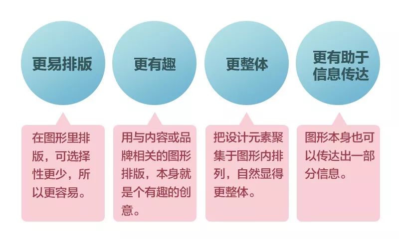 所谓图形排版法,即用图形承载文字或图片,这样排版的好处有: