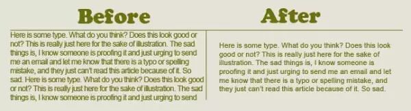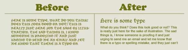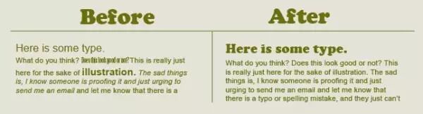 一定要仔细考量文本字体的大小。标题应当更大且标粗,但是文章篇幅字体也太大的话,就会显得文体比较low。举个栗子,当你去到一个高级餐厅时,你会发现里面的菜单的字体总是很小,因为这样看起来更精致。(当然也不能小得完全看不见!)对于标题和段落标题,尽可能地使用能区别于篇幅字体的更大一些的字体。