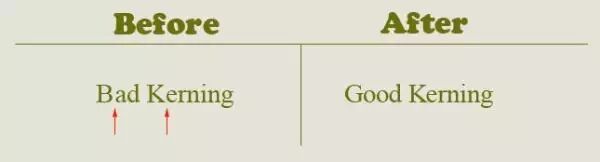 字间距即字母间的距离。大写字母和相邻的小写字母间的距离通常更宽,而字母间的距离应当是一样的。对于这种情况,我们可以以第三个字母开始的字距为标准进行调整。不要轻易尝试调整宽高比,不要随便拉长或者拉宽字体。如果你不喜欢所选字体的字距,直接换成另一种字体吧。