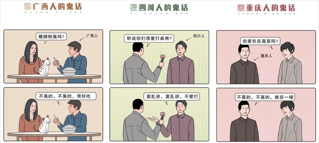 又比如 4 月 18 日的推文《南方人说谎VS北方人说谎》,神还原了每个省份“我信了你的邪”之后的窘况,不禁让人捧腹大笑;