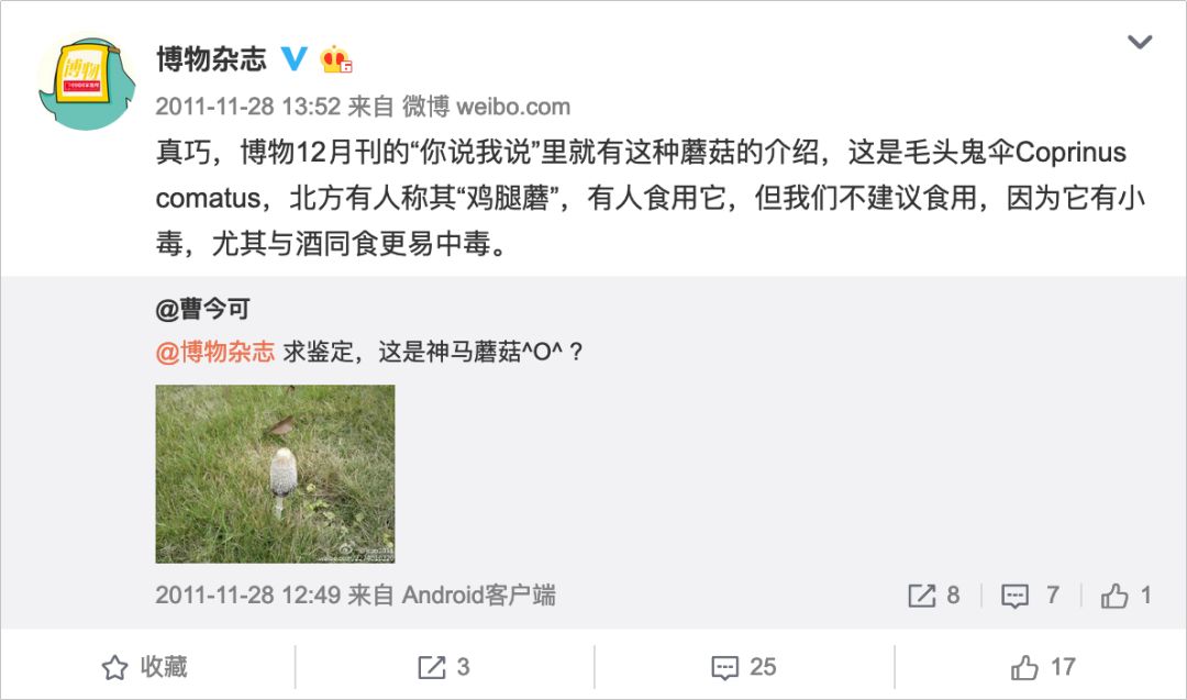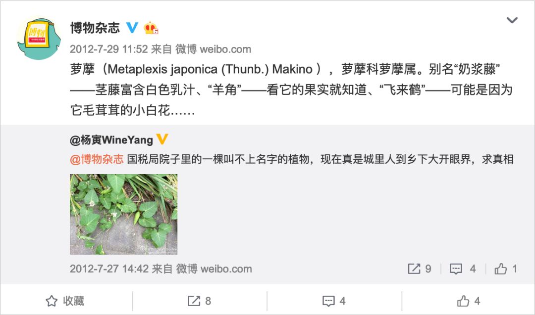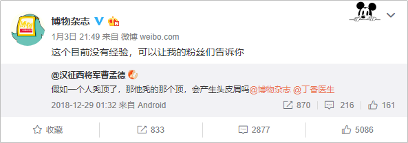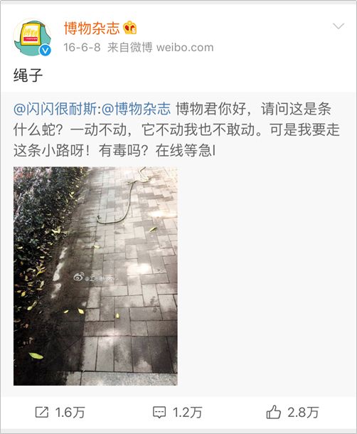 目前,博物杂志的微博内容基本上都遵循一种形式——转发粉丝提问的微博,并附上自己对该问题的见解,回复的内容即是科普。