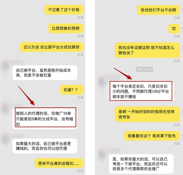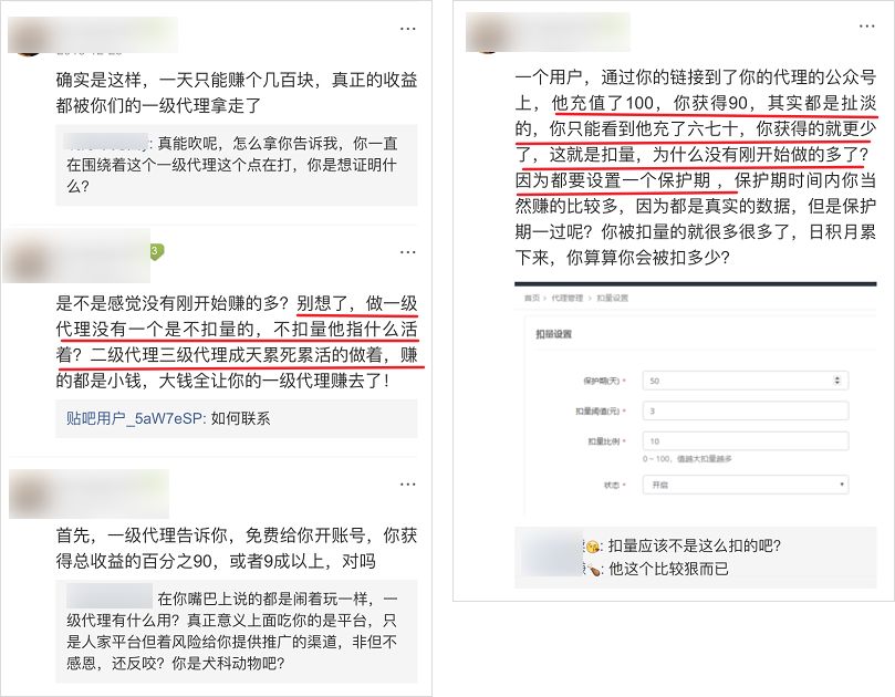 他们先通过高额分成比例,吸引代理们纷纷加入代理平台,等到这些代理们做的风生水起的时候,平台可能会对你的后台动手脚,用行话说就是“扣量”。