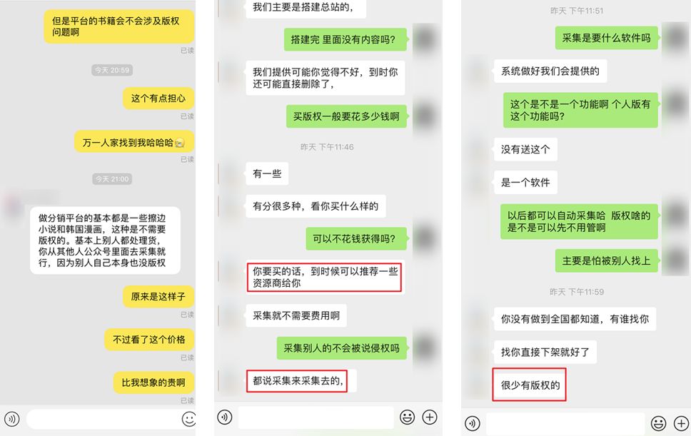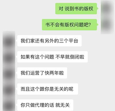 关于小说版权问题,我问了下淘宝上分销平台的卖家和微信上搭建分销平台方,他和我说很多内容是不需要版权的,基本上都是别人的处理货,而且大家都采集来采集去的,没有人管版权问题。