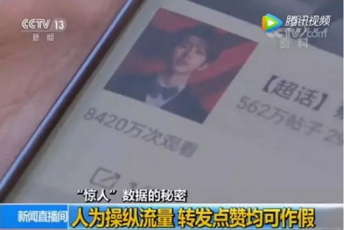早在今年 2 月,央视曝光过明星流量数据造假的现象,并指出某艺人发布了一条宣传新歌视频的微博,获得了超过一亿次的转发。(虽然没有直接点名,但视频里的头像暴漏了一切……)