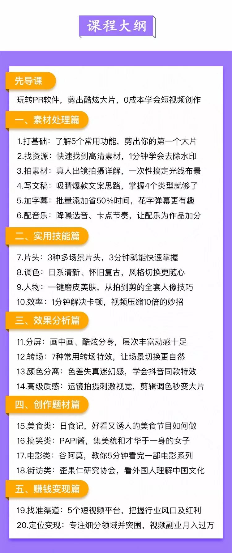 4、循序渐进的教学内容,从基础到进阶再到提高,让你全面掌握PR软件及短视频创作方法