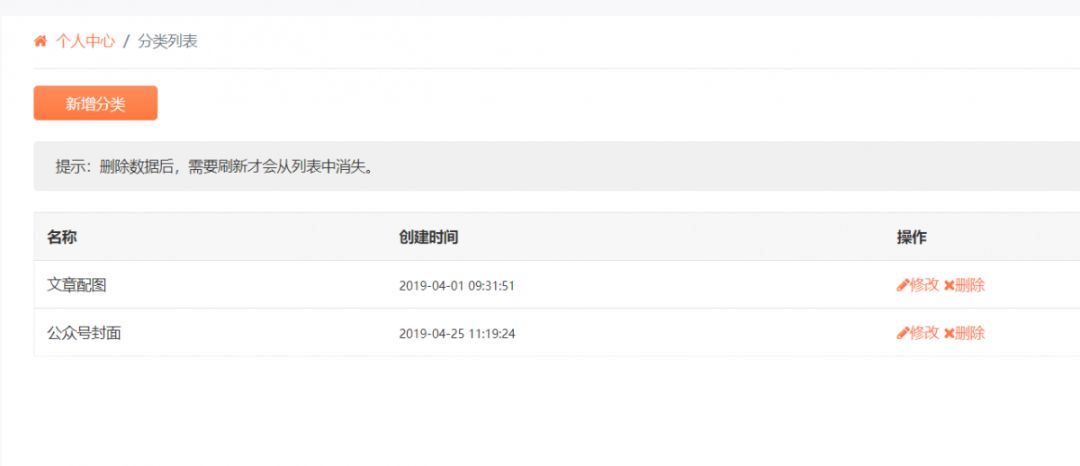 在这里,我们可以新建图片分类,也可以对已经创建好的文件夹进行修改和删除。