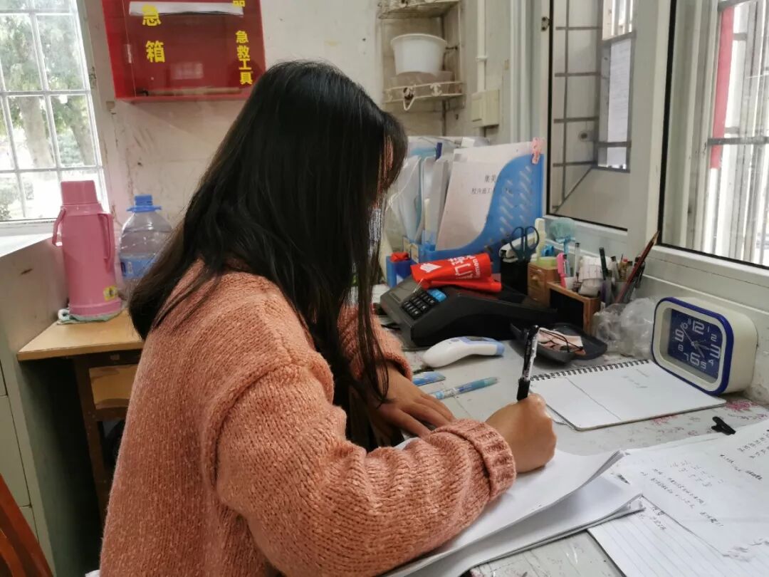 疫情爆发的那一刻,她的心里就吹响了冲锋号。体温计是她的武器,口罩是她的盔甲。带着家人的鼓励,与心里的一份担当和责任,金融系的曾雯荟毅然走上了“战场”。对每一个来往行人进行登记和体温检测是她的日常工作。不论是交通管制前密集的人流,还是如今街口偶尔路过的行人,她都一丝不苟地排查和登记。在这个如今日渐空旷的街口,她已经不知道站了多少个“十小时”。小小的登记册承载着两个村近万人的安全保障。每一条出入登记,每一次体温测量,都是她对于家国的真切付出。