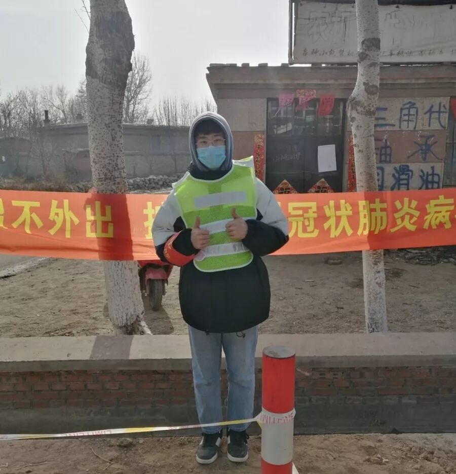 在如今病毒肆虐的严峻形势下,人们大多选择居家隔离远离病毒,而投资系的杨晨芳本着为自己家乡尽一份绵薄之力的坚定目标和对前线抗疫医护人员的敬仰,勇做风雨中的逆行者。她的工作是在村口交通要塞关卡登记进出人员与车辆的信息,宣传防疫知识,看似微小的工作却承担了巨大的责任。