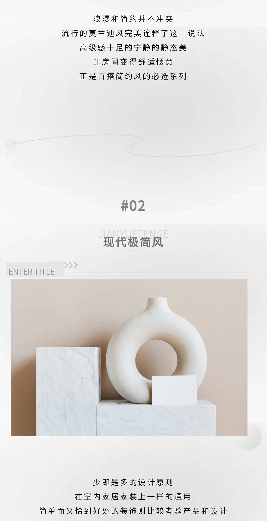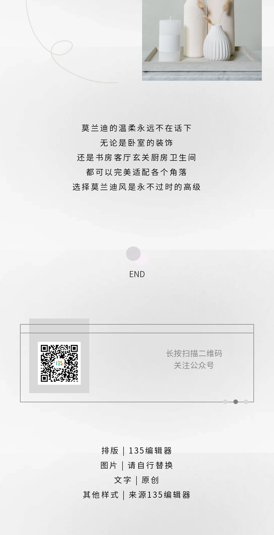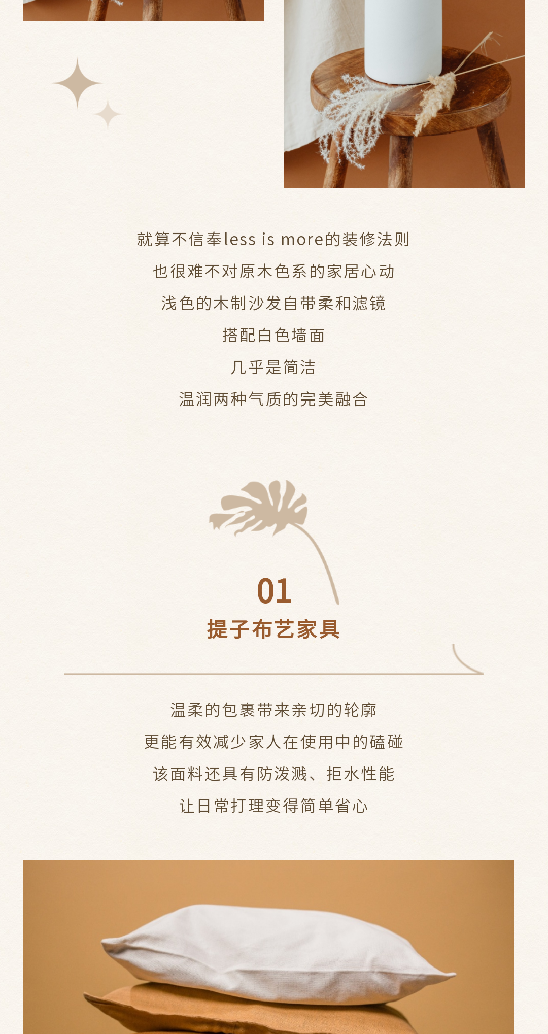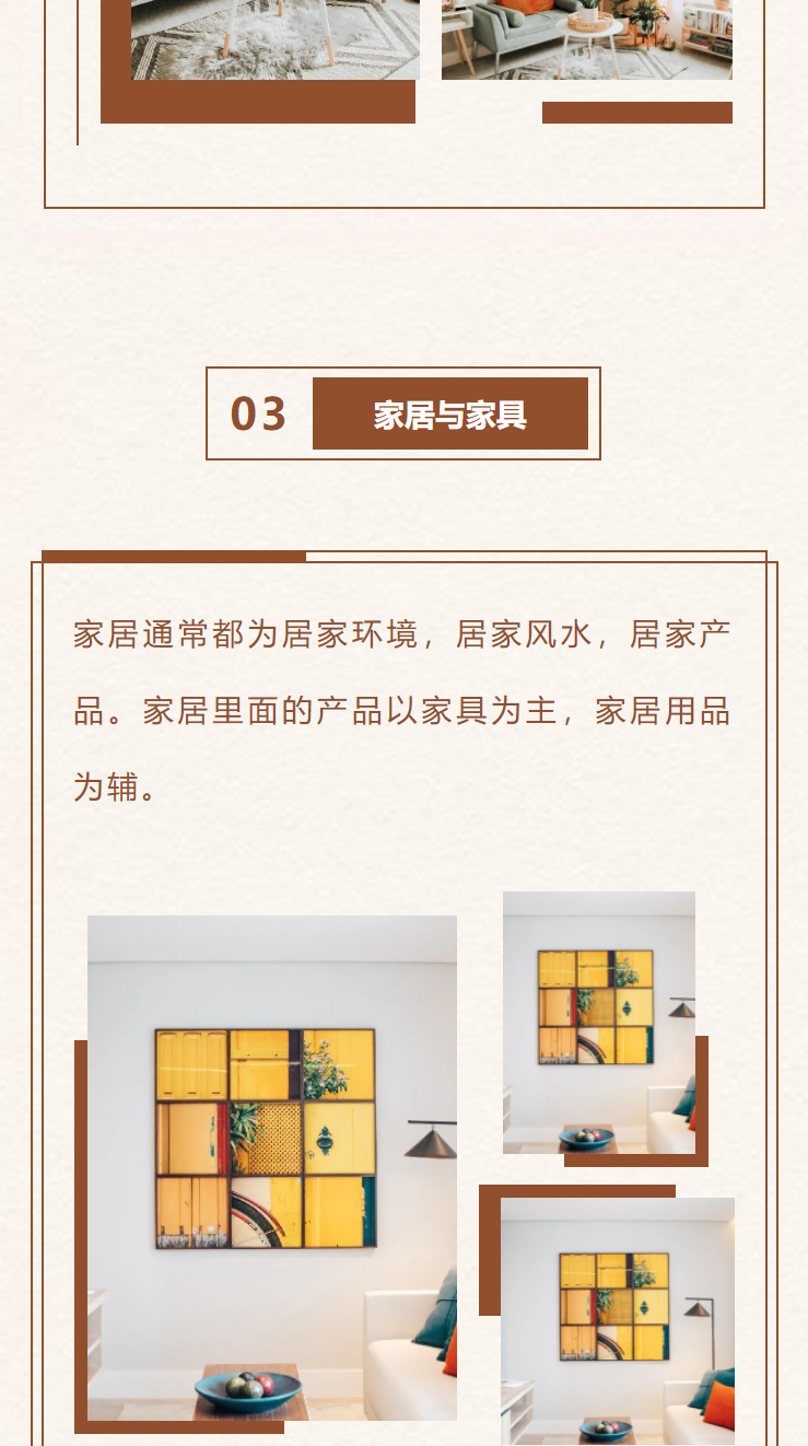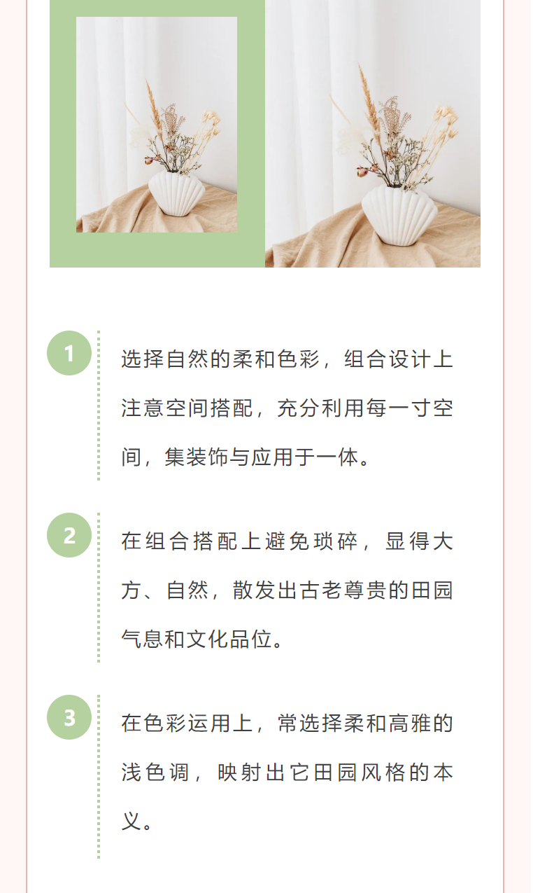 这类推文排版的发挥空间大,主要是与推荐家居单品、家居搭配等方面有关,推文排版的整体氛围很重要,图片占比较大,排版的发挥空间大,风格上可以选择ins风、莫兰迪色、极简风。