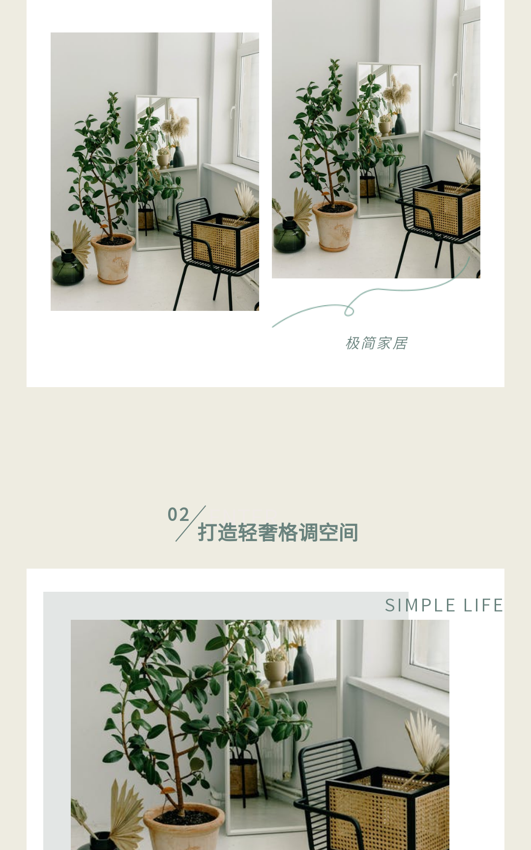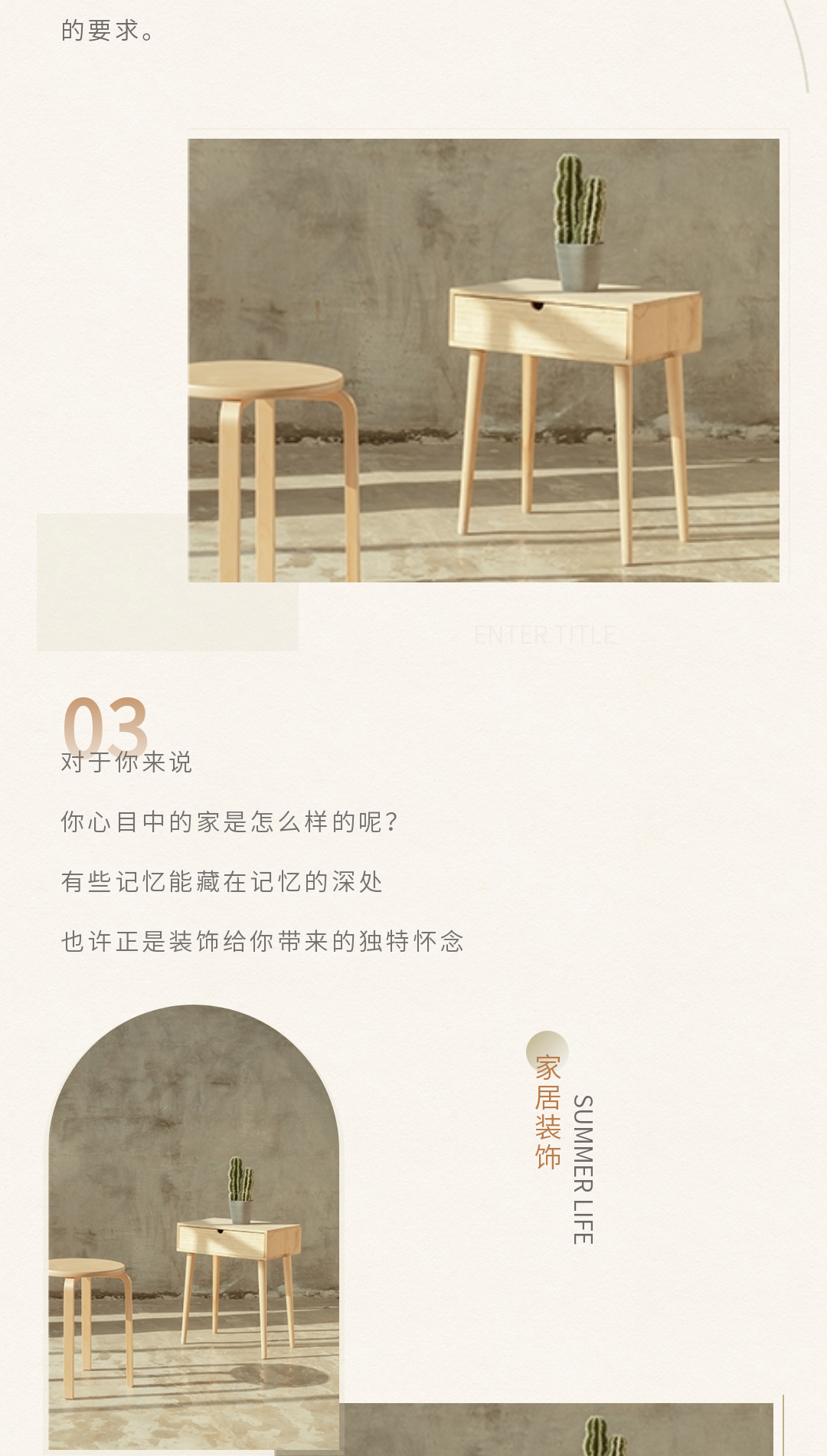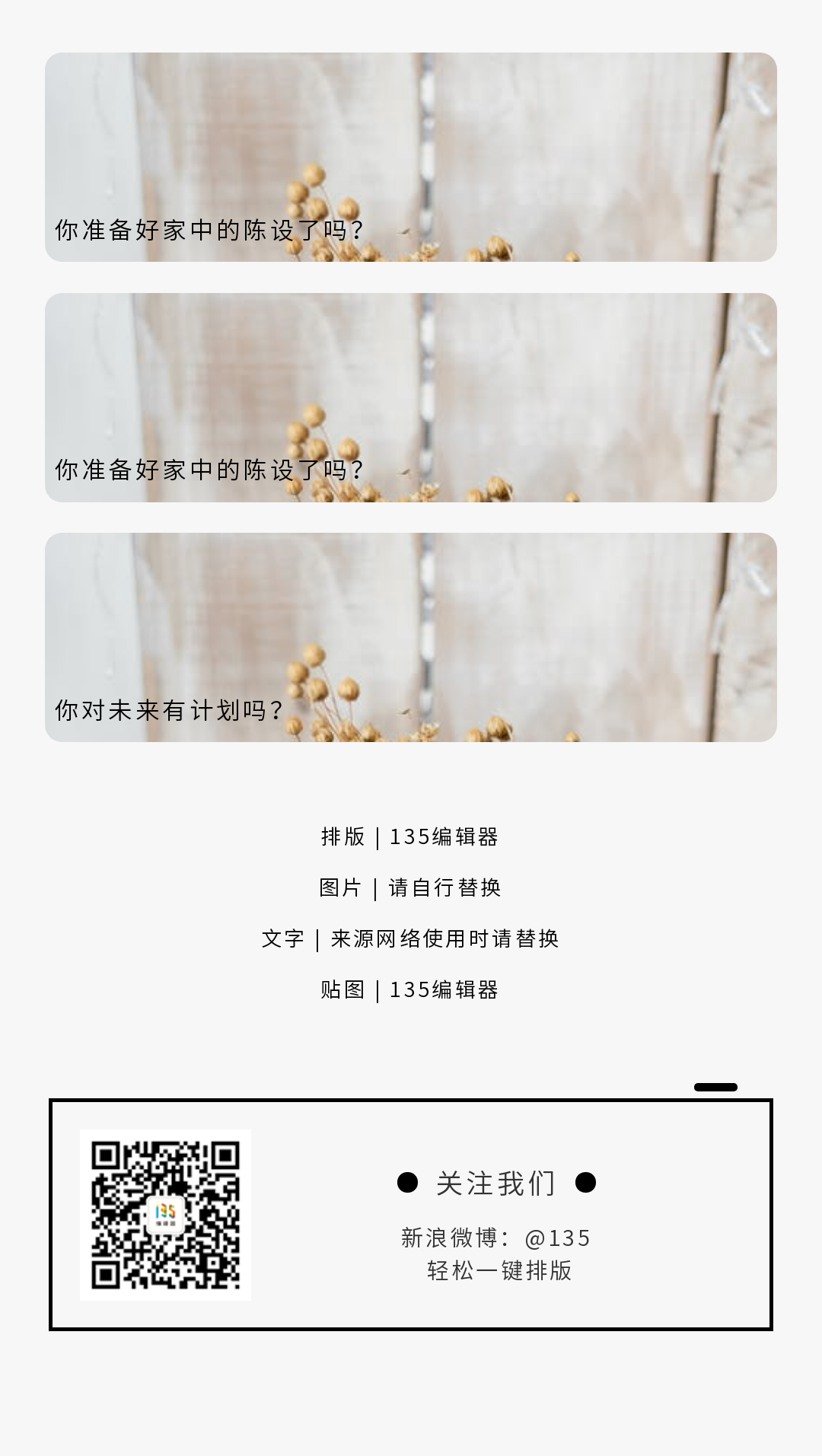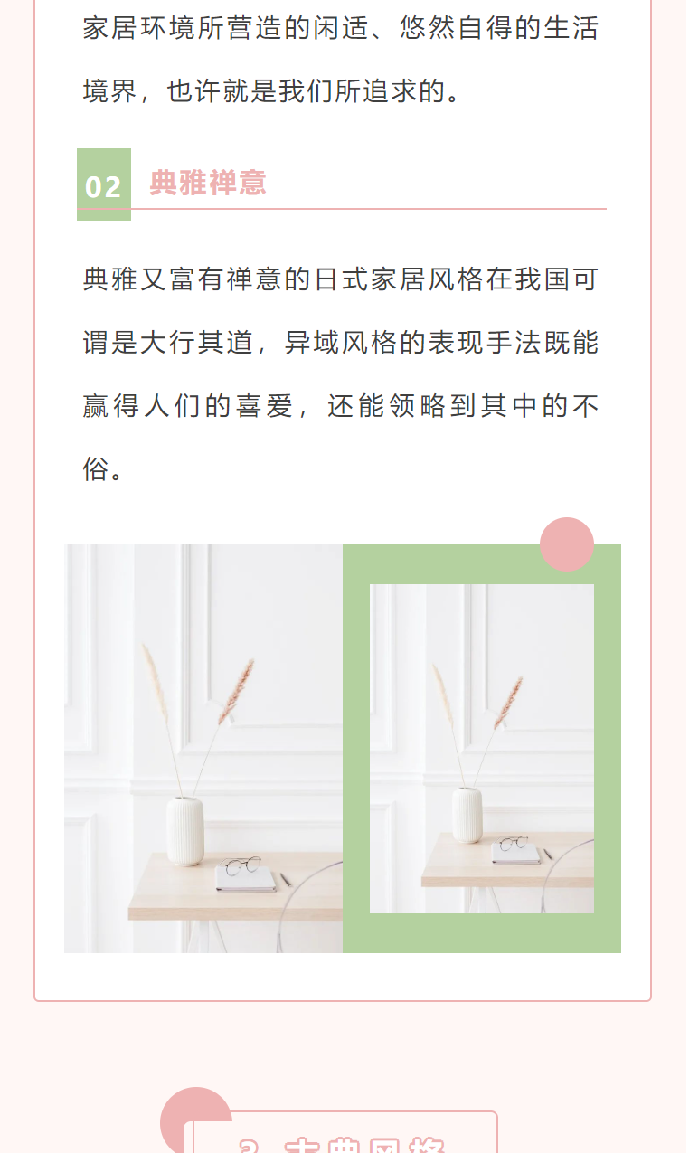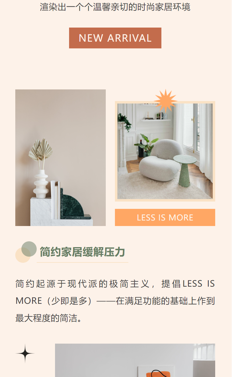 这类推文排版的发挥空间大,主要是与推荐家居单品、家居搭配等方面有关,推文排版的整体氛围很重要,图片占比较大,排版的发挥空间大,风格上可以选择ins风、莫兰迪色、极简风。
