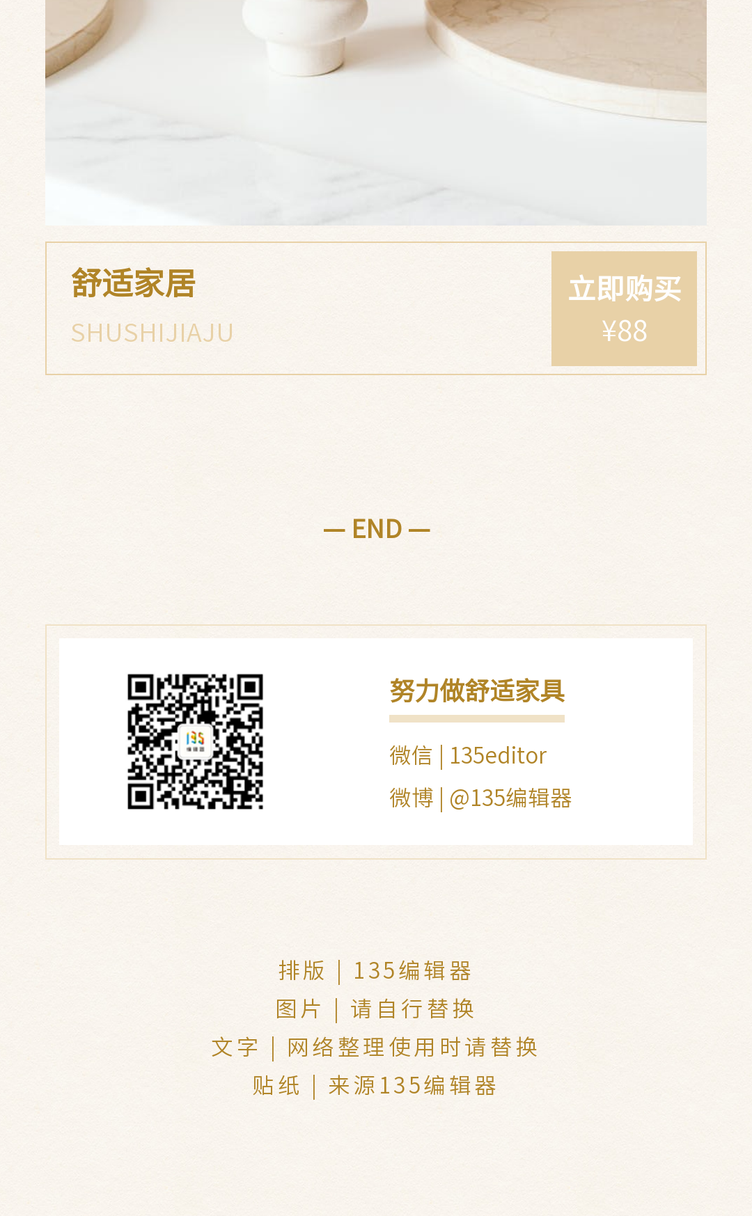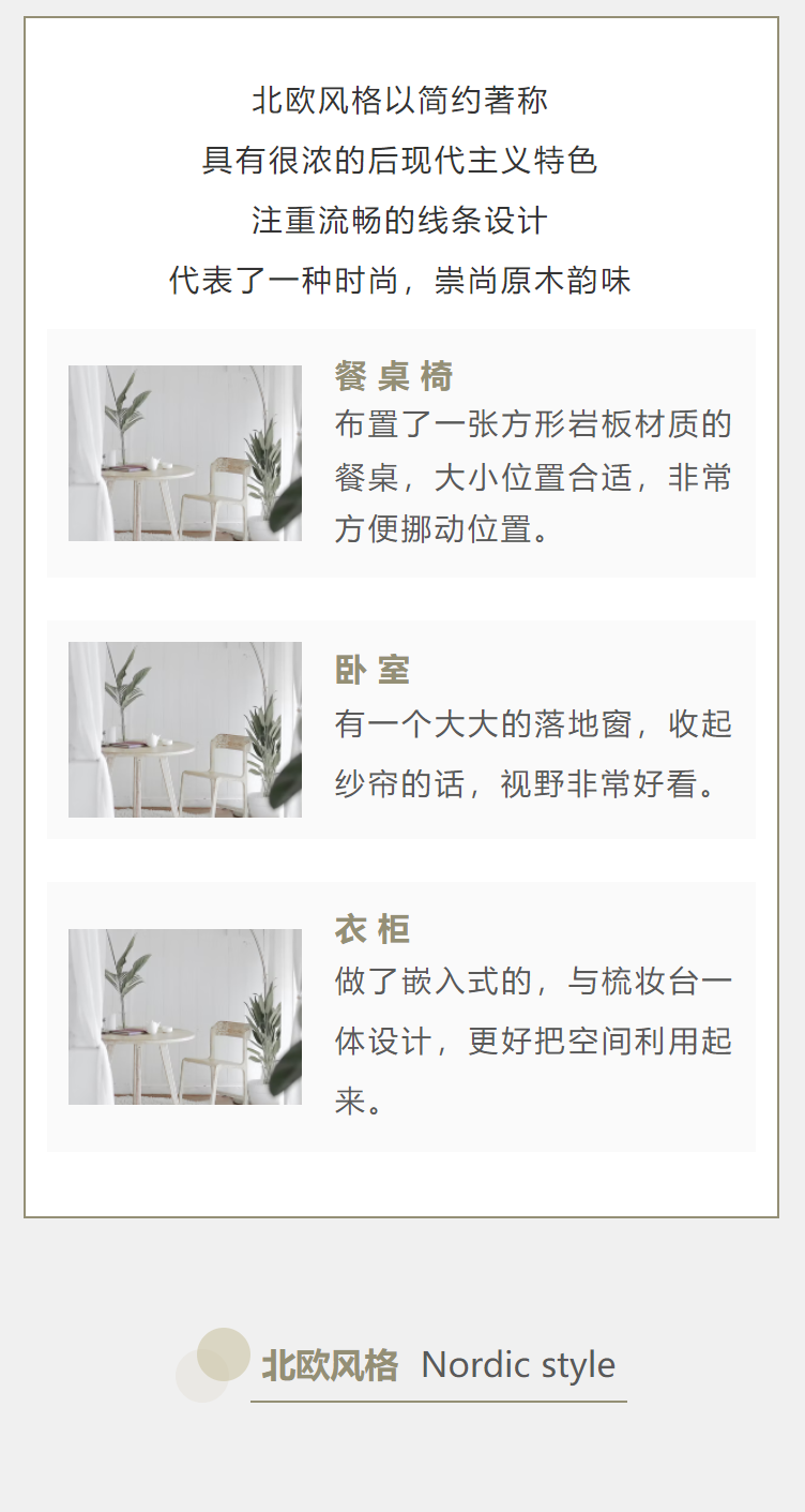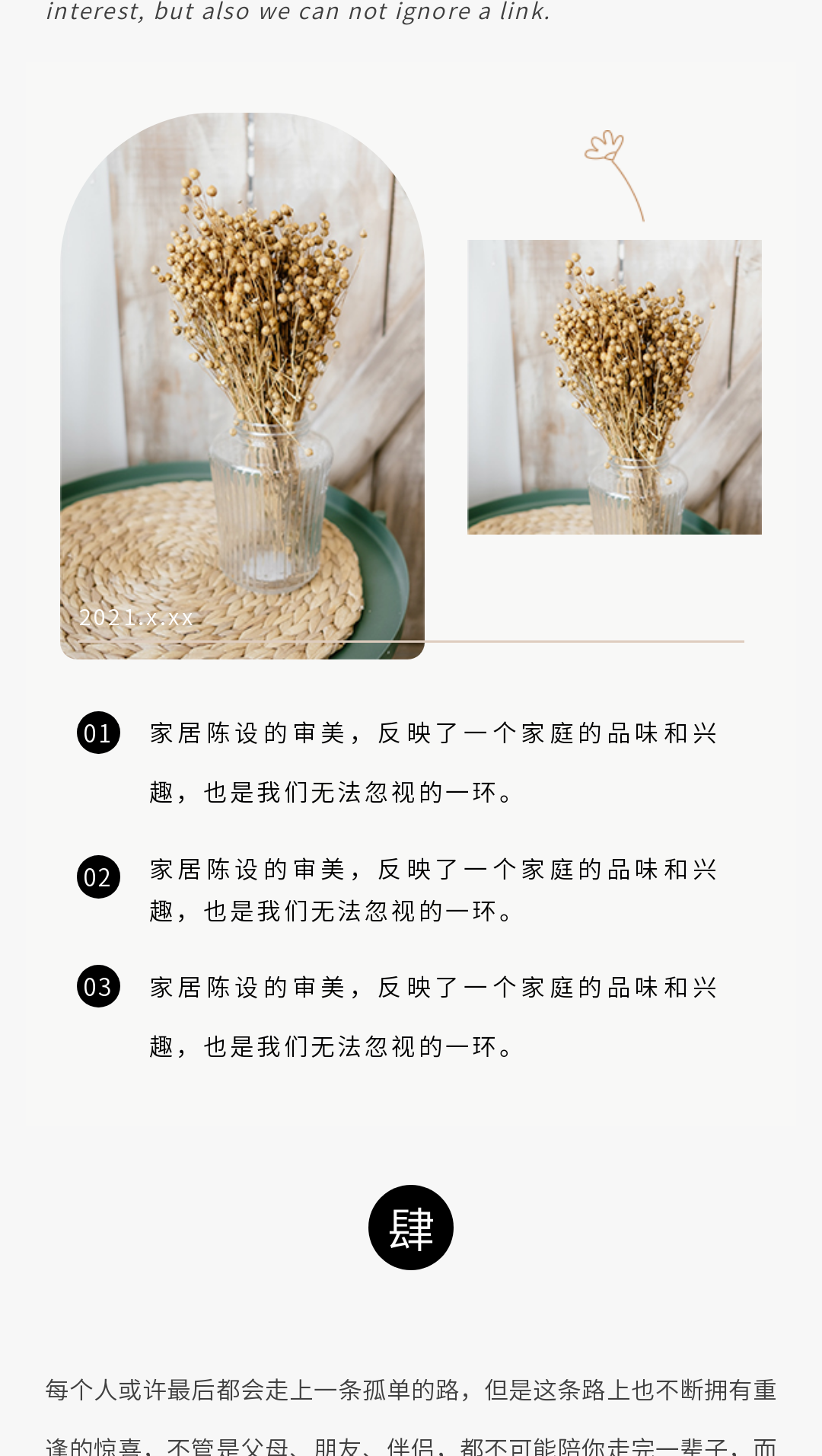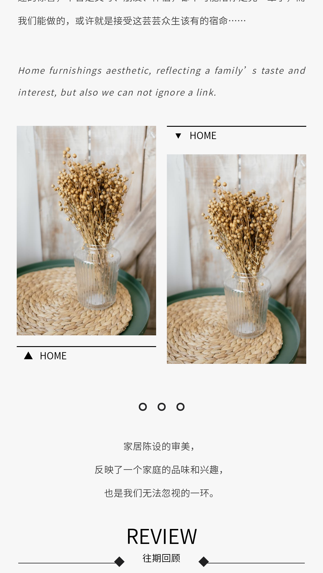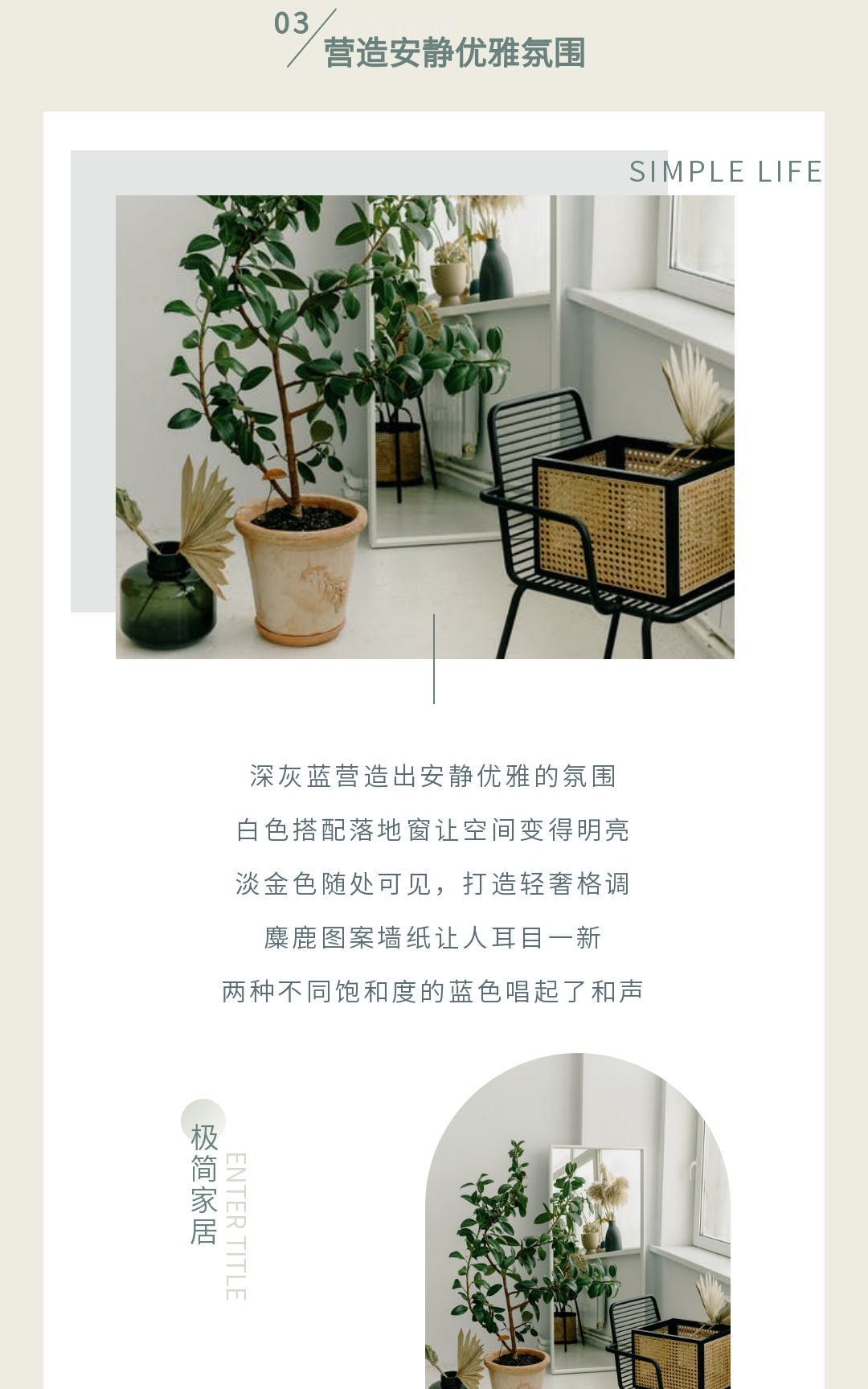 这类推文排版的发挥空间大,主要是与推荐家居单品、家居搭配等方面有关,推文排版的整体氛围很重要,图片占比较大,排版的发挥空间大,风格上可以选择ins风、莫兰迪色、极简风。
