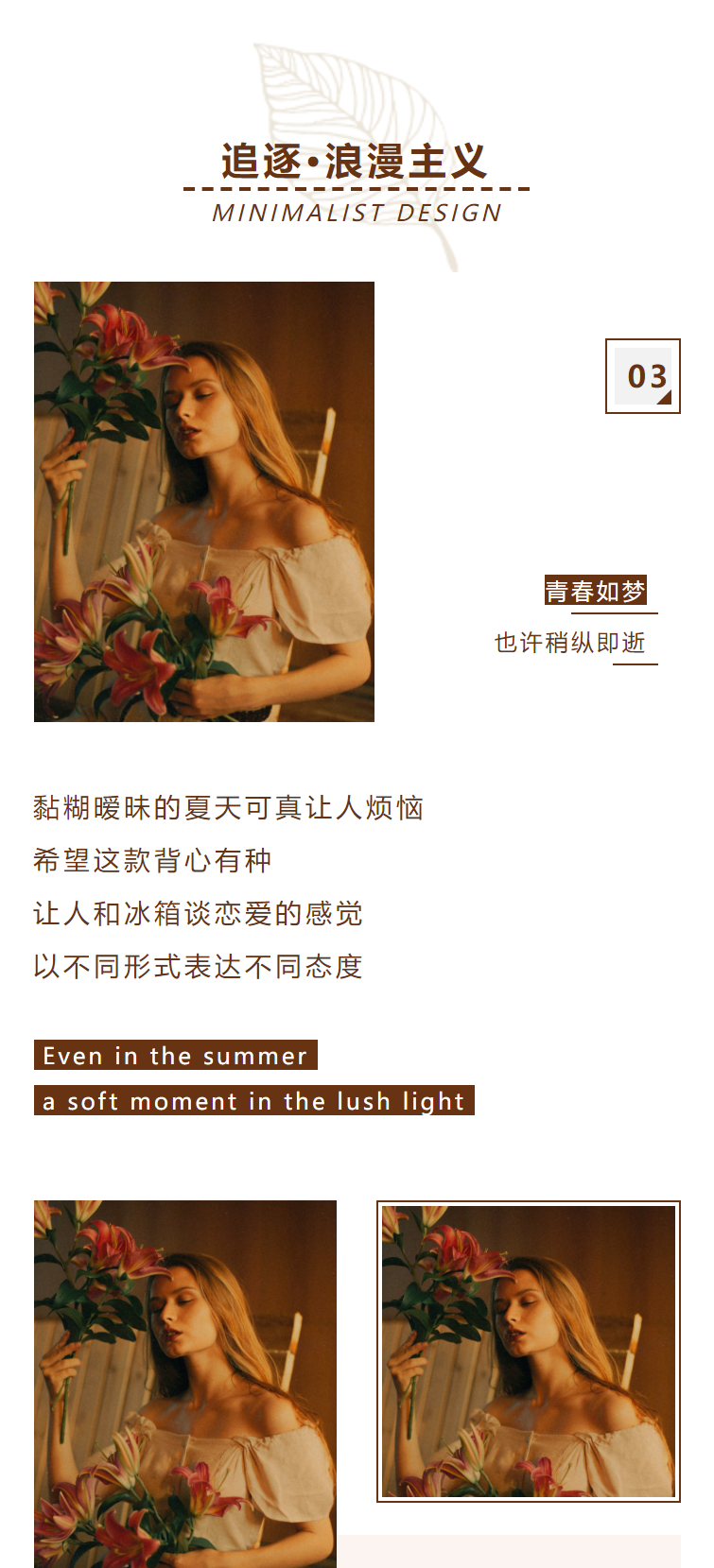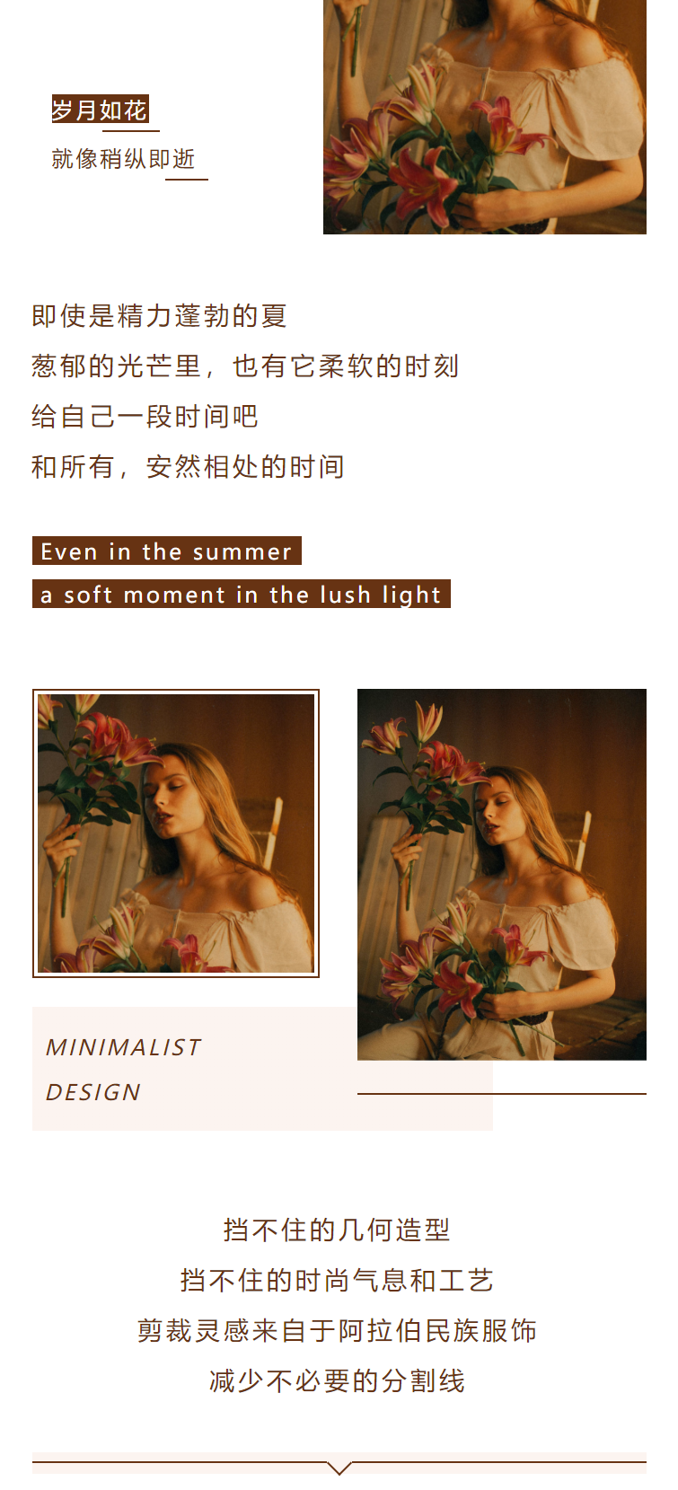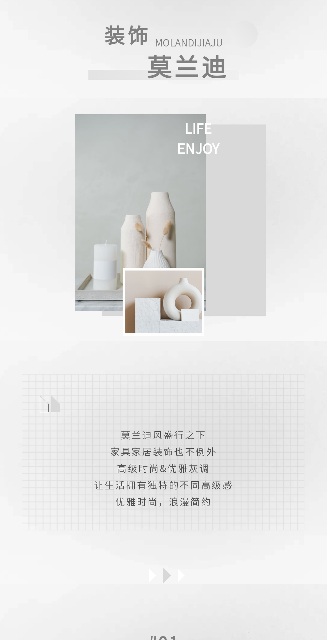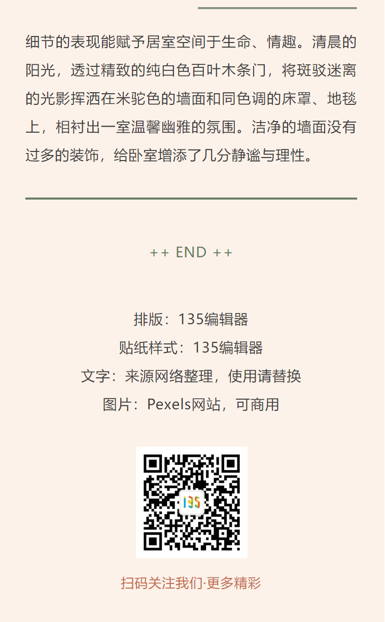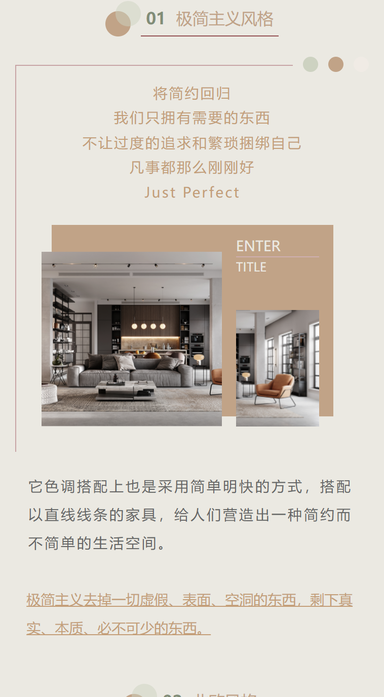 这类推文排版的发挥空间大,主要是与推荐家居单品、家居搭配等方面有关,推文排版的整体氛围很重要,图片占比较大,排版的发挥空间大,风格上可以选择ins风、莫兰迪色、极简风。