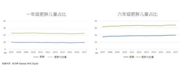 根据英国政府统计,10 到 11 岁的儿童里每五个就有一个体重过重。而 2017 年经合组织(OECD)的报告也指出,近十年来,六年级学生肥胖人数都比初入学的学生来的高。以 2017 年为例,六年级学生中有约 20% 被归类为肥胖人群,是一年级肥胖人数的近两倍。这代表儿童在小学六年间以极快的速度增加体重。