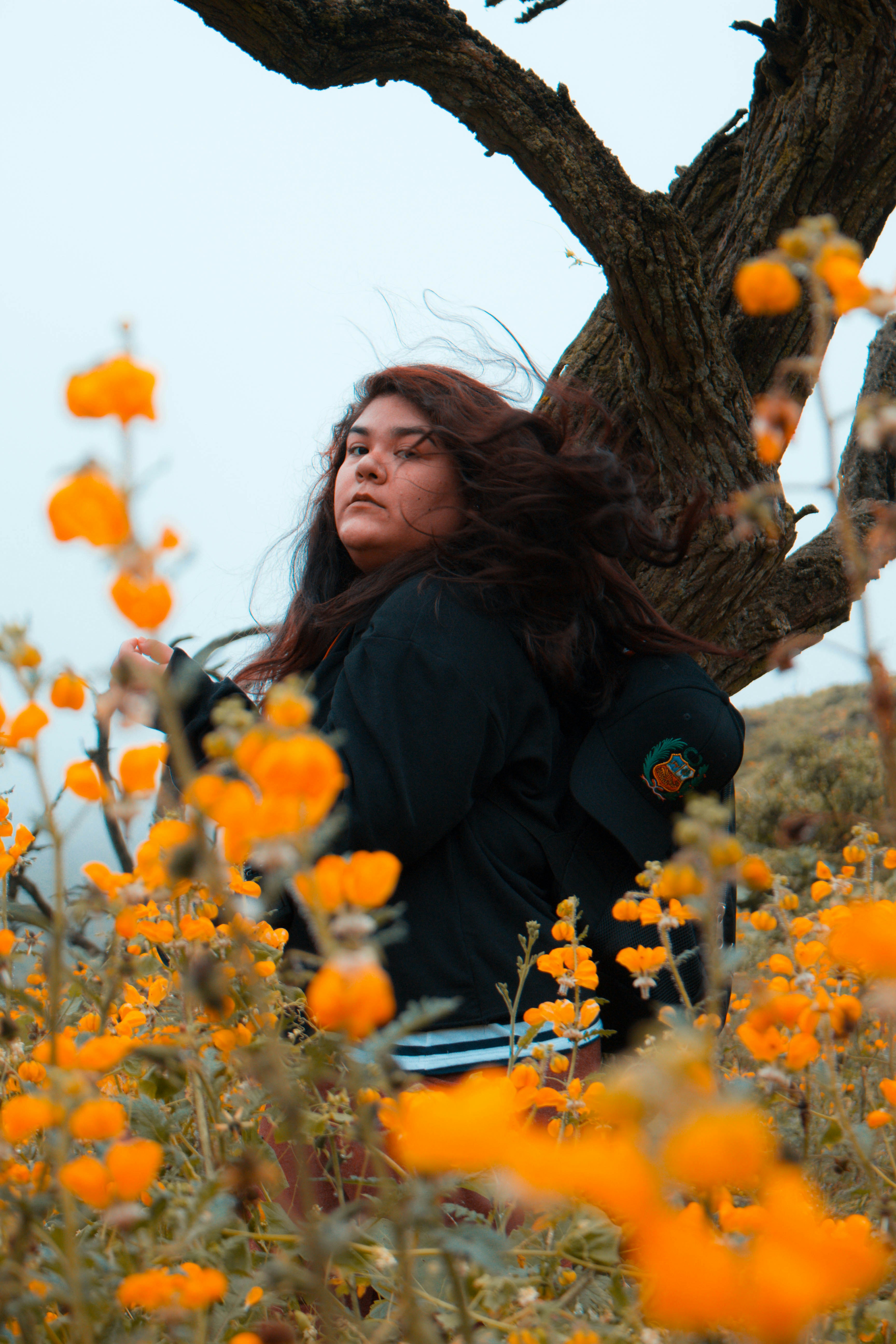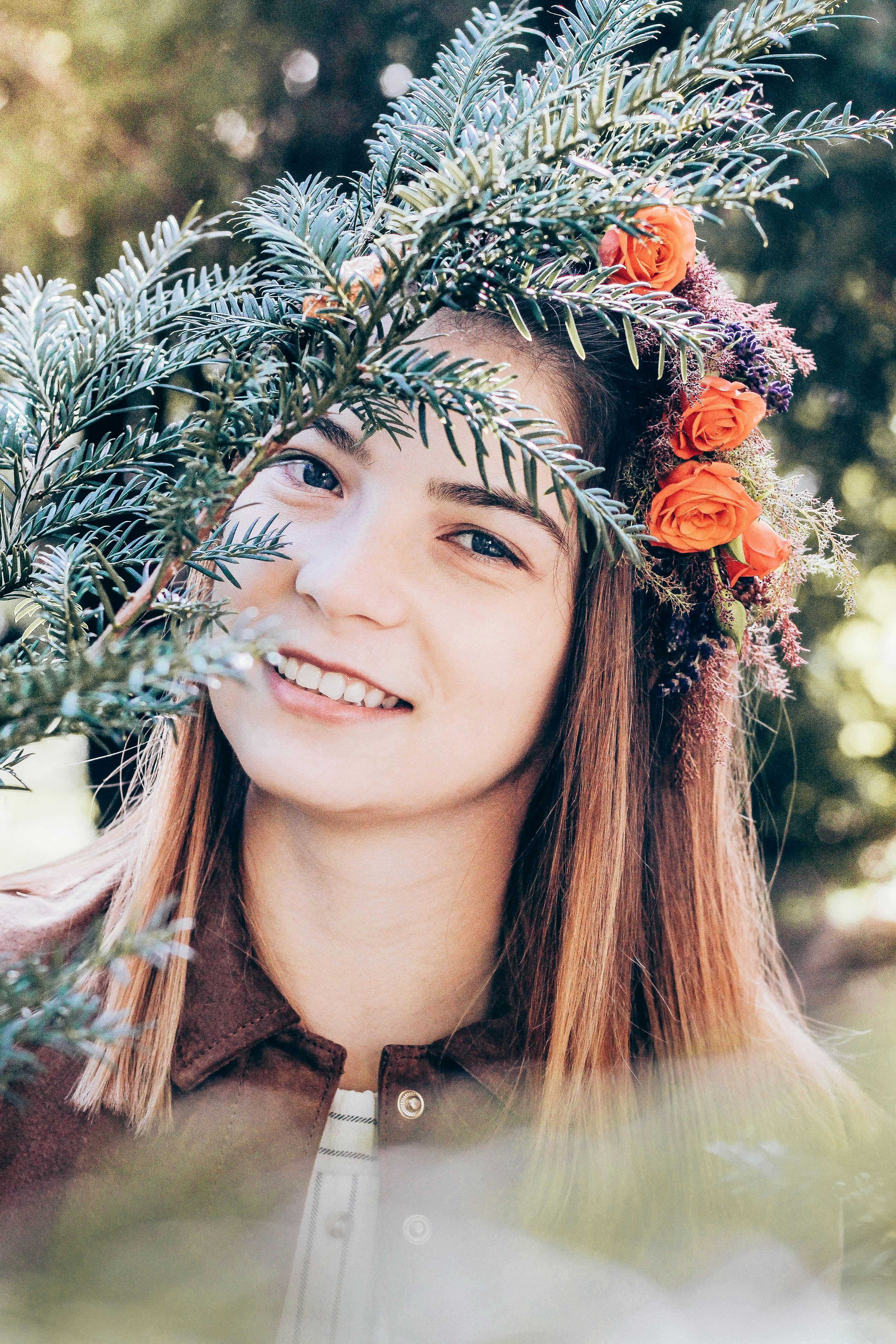 女人,女人,脸,画像,花,橘子,玫瑰,白种人,树叶,树枝,树