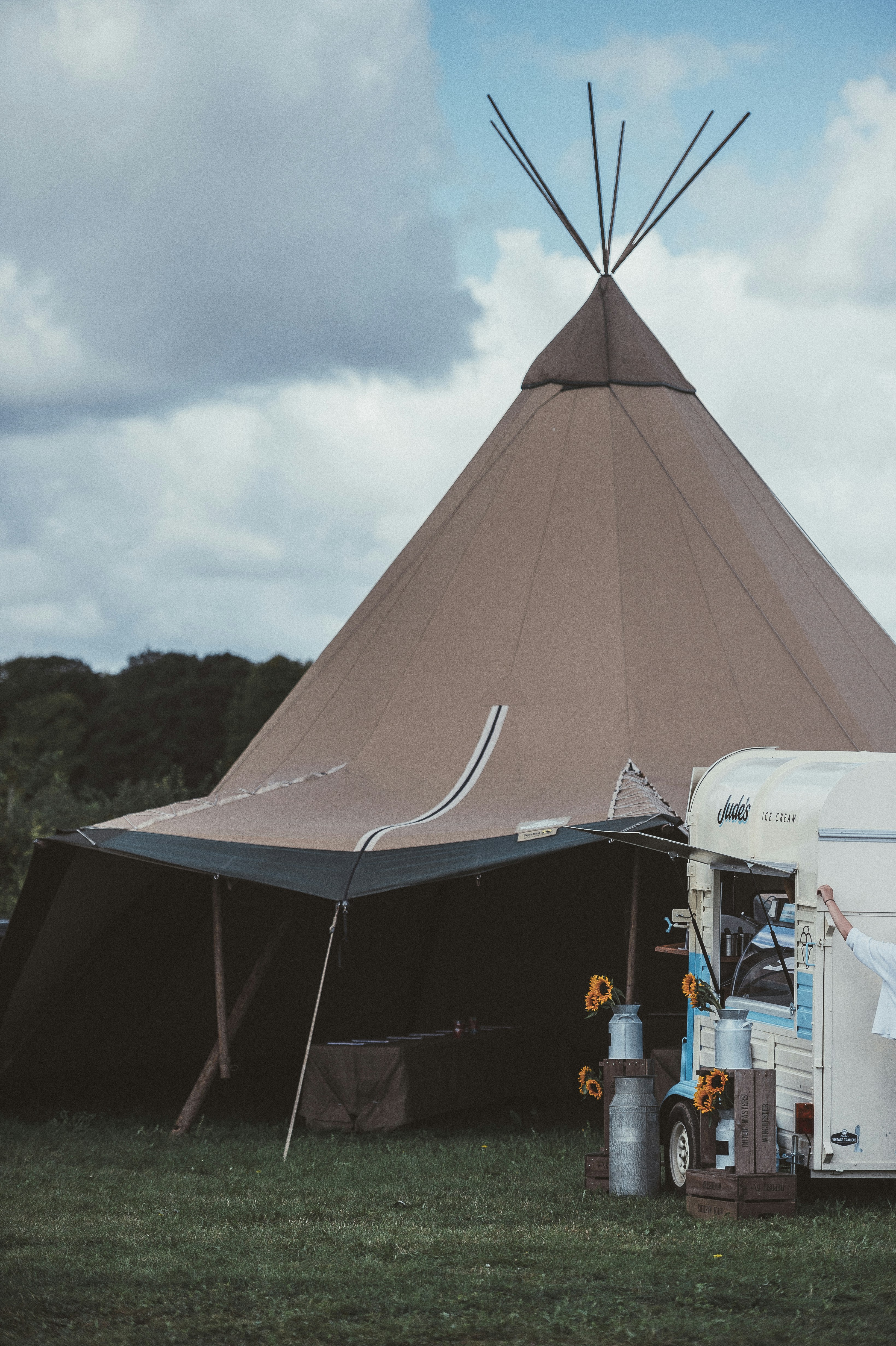 帐篷、露营、露营、面包车、冰淇淋、鲜花、向日葵、节日