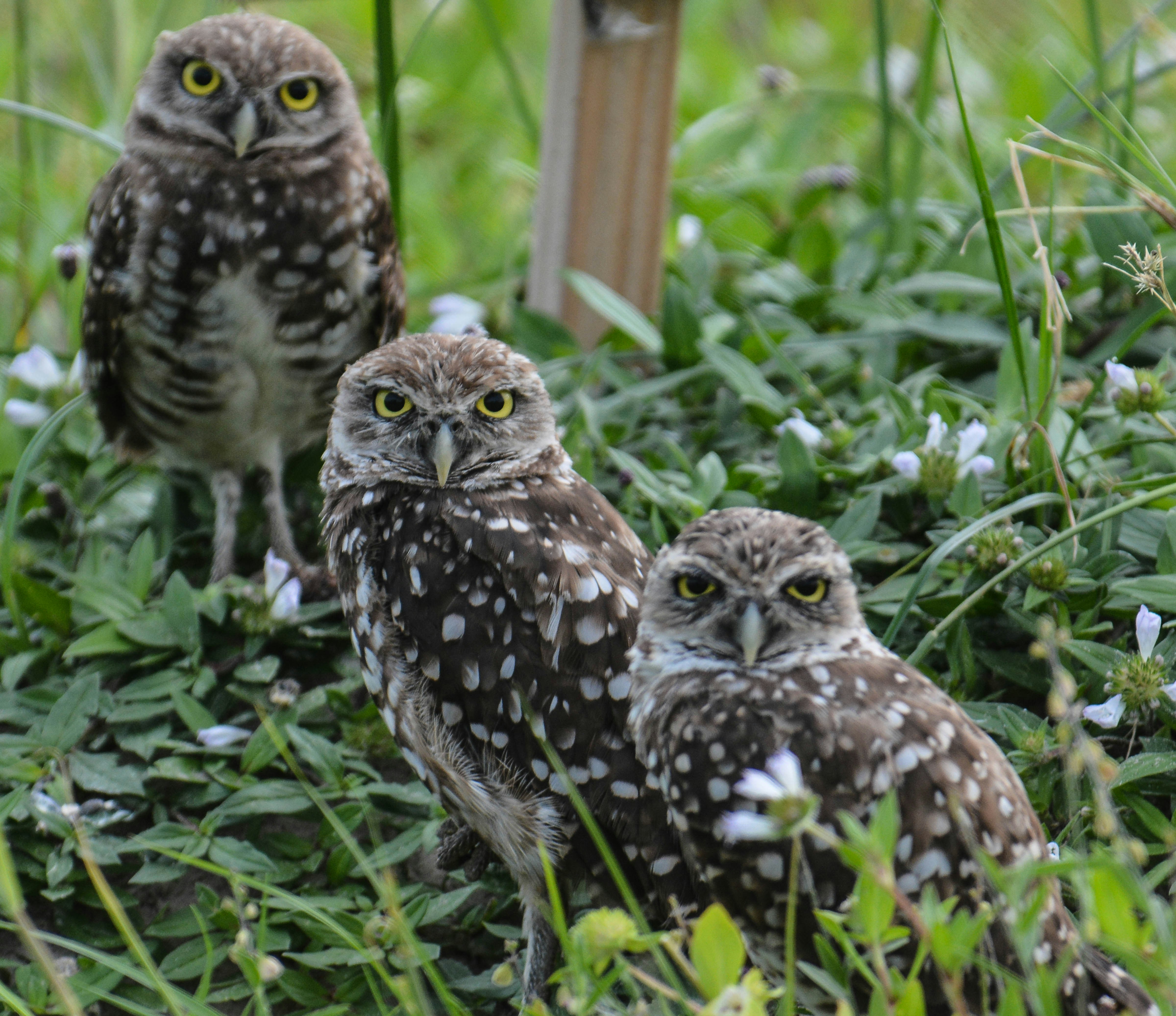 鸟,动物,猫头鹰,野生动物,黄色眼睛,花朵,绿色植物,地面,树叶,羽毛,斑点