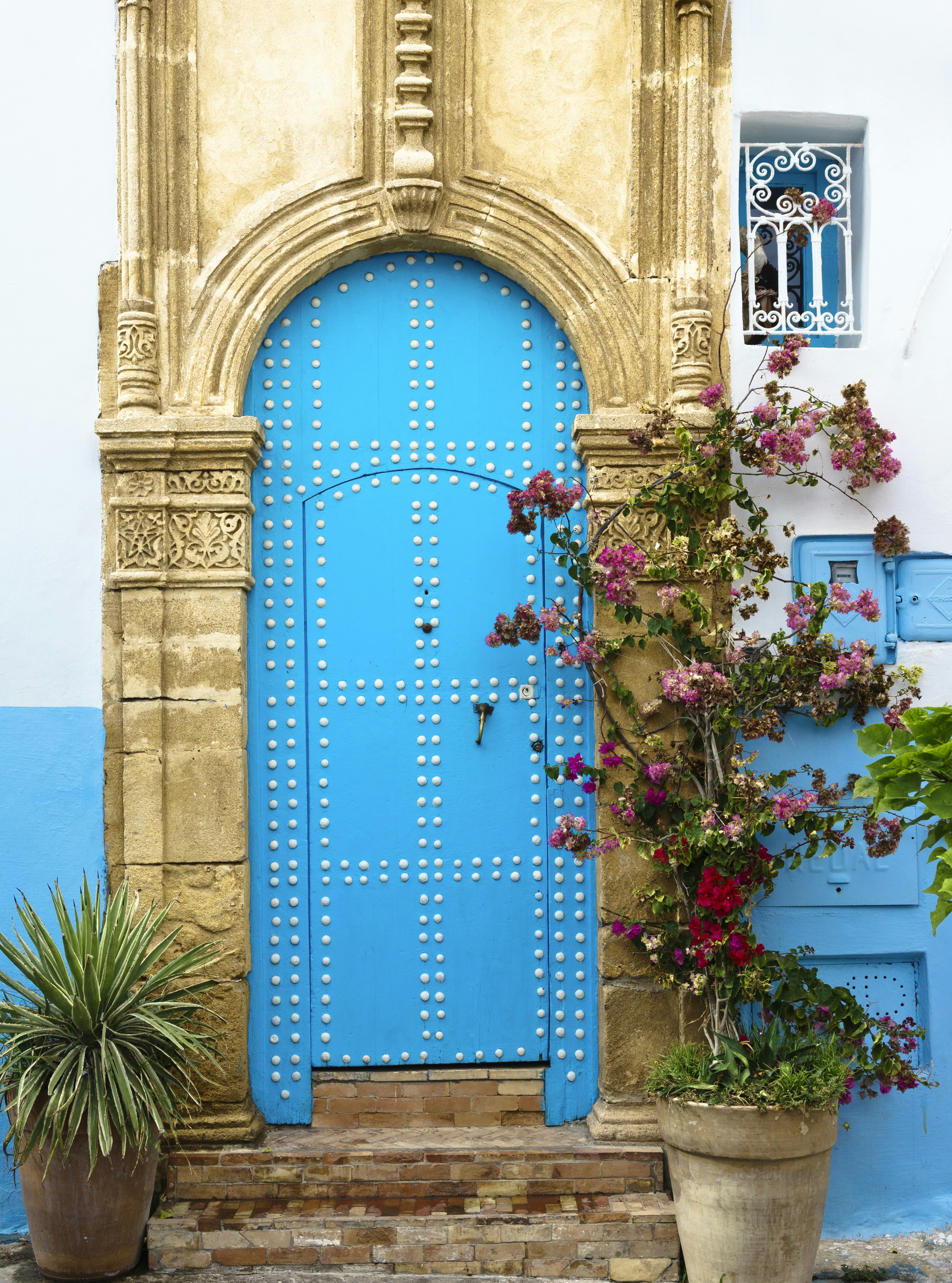 门,门,入口,蓝色,建筑,植物,花卉,盆栽,种植园,拱门,教堂,建筑,马拉喀什,旅游,摩洛哥门,摩洛哥
