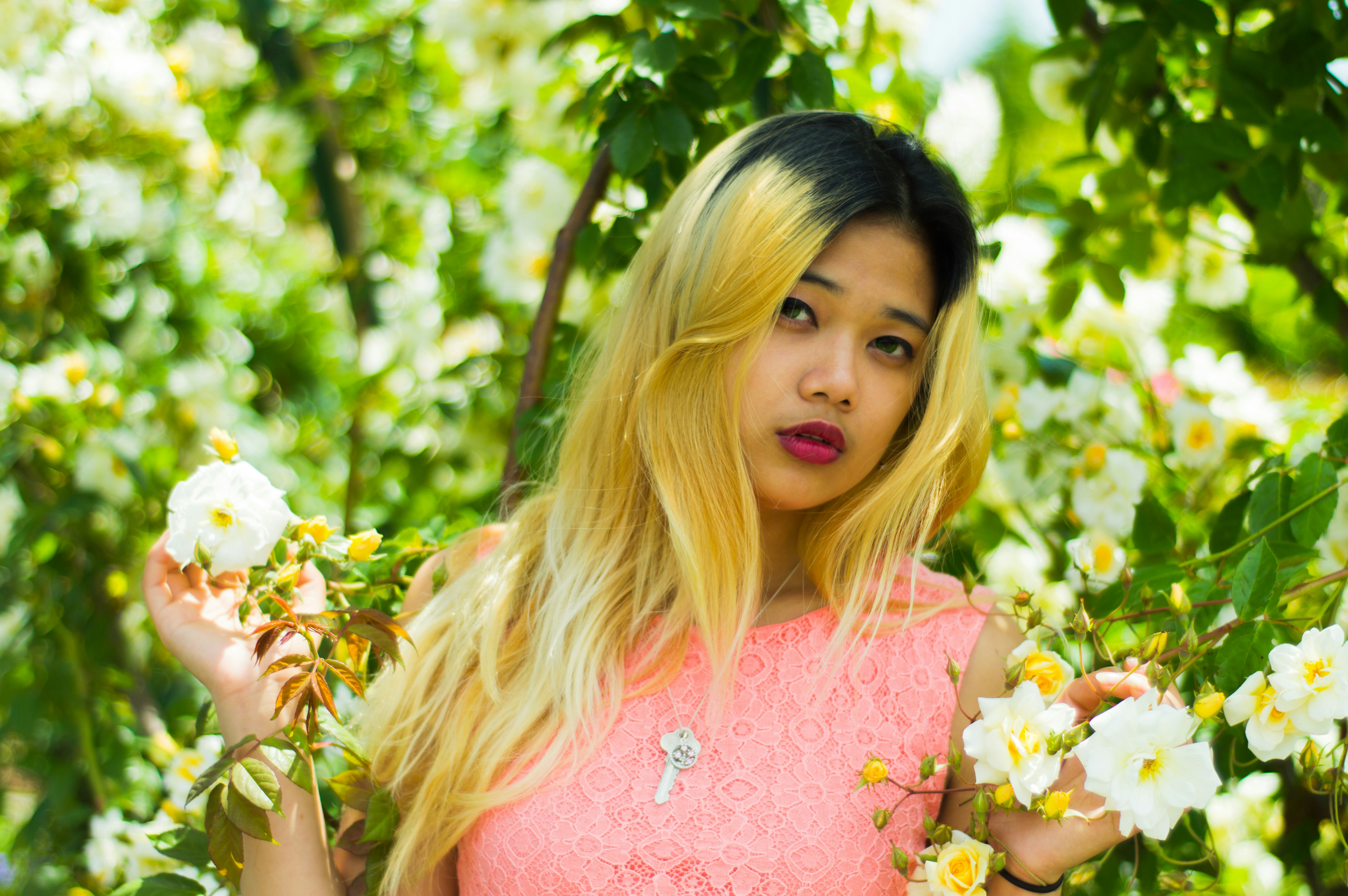 女人,女人,灌木,花朵,花朵,粉色,肖像,树木,林地,森林,丛林,模型,玫瑰,颜色,摄影师,照片,绿色,时尚,自然,混乱