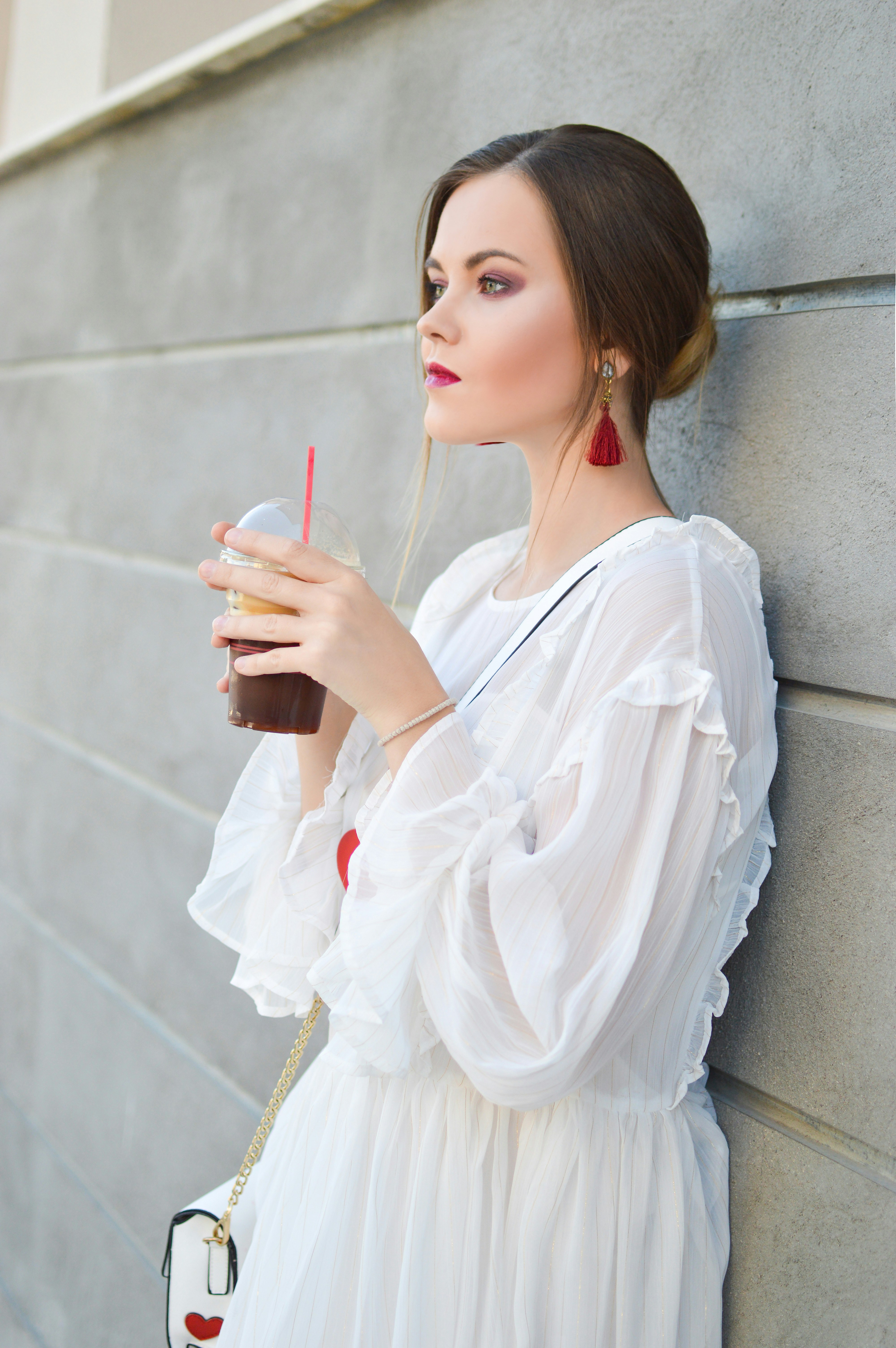 淑女,时尚,女人,时尚,饮料,化妆品,生活方式,灰色,白色,人,女孩,咖啡