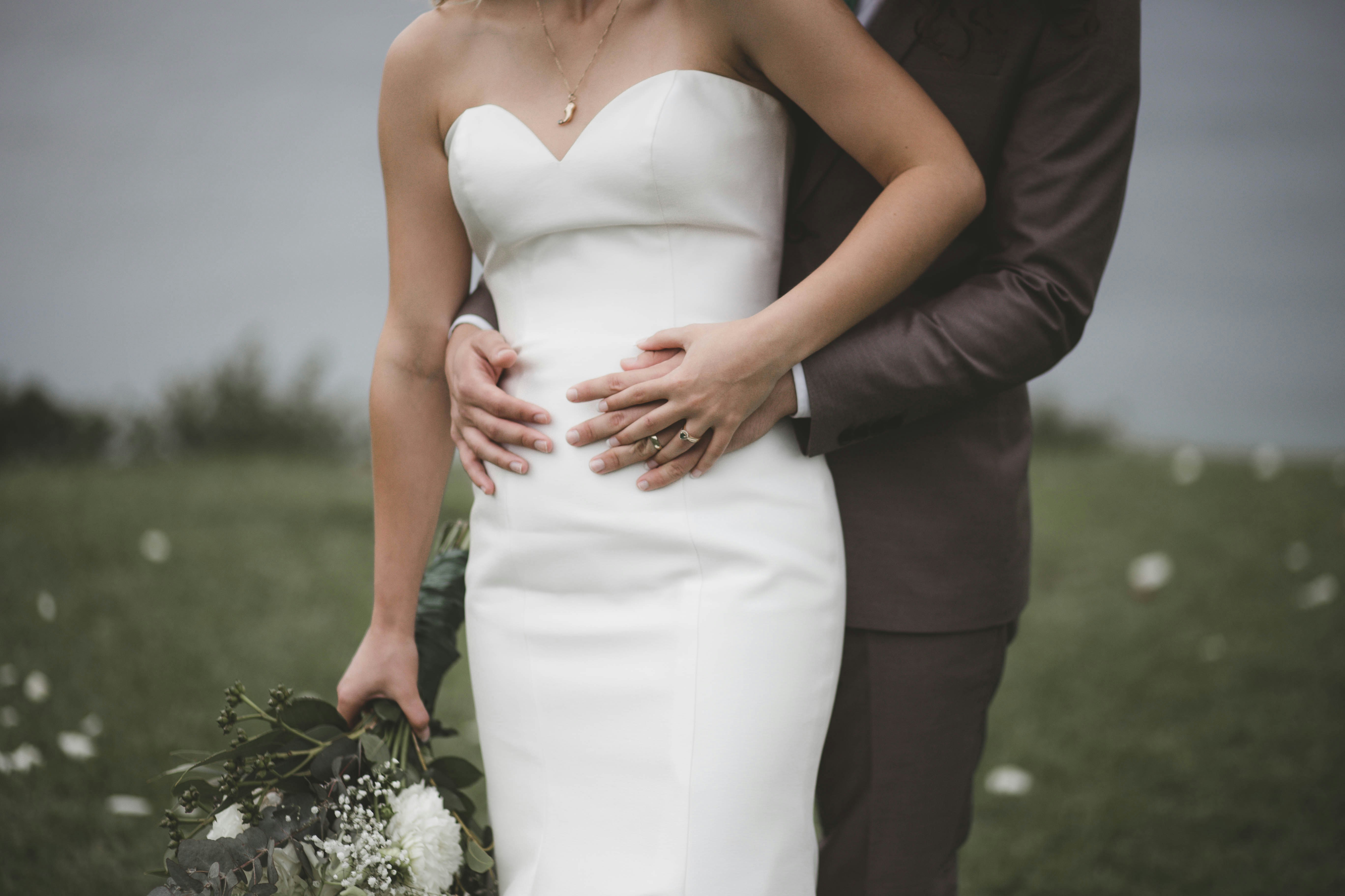 手,男人,女人,拥抱,拥抱,结婚,新娘,新郎,花束,婚礼,结婚戒指,鲜花,人,高加索人,西装,白色连衣裙,结婚礼服,手牵手