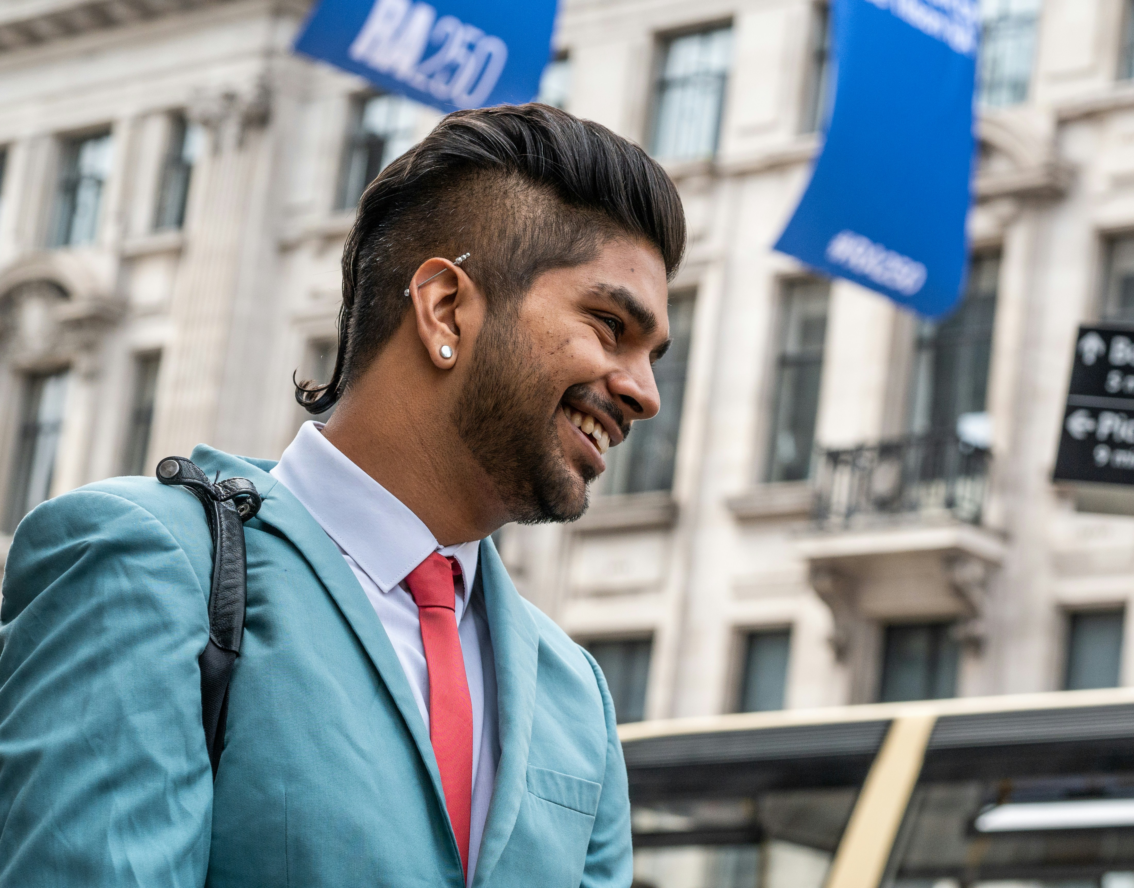 人,耳环,双头,微笑,肖像,胡须,发型,城市,城市,街道,时尚,风格,领带,男人,男人,棕色,坦率