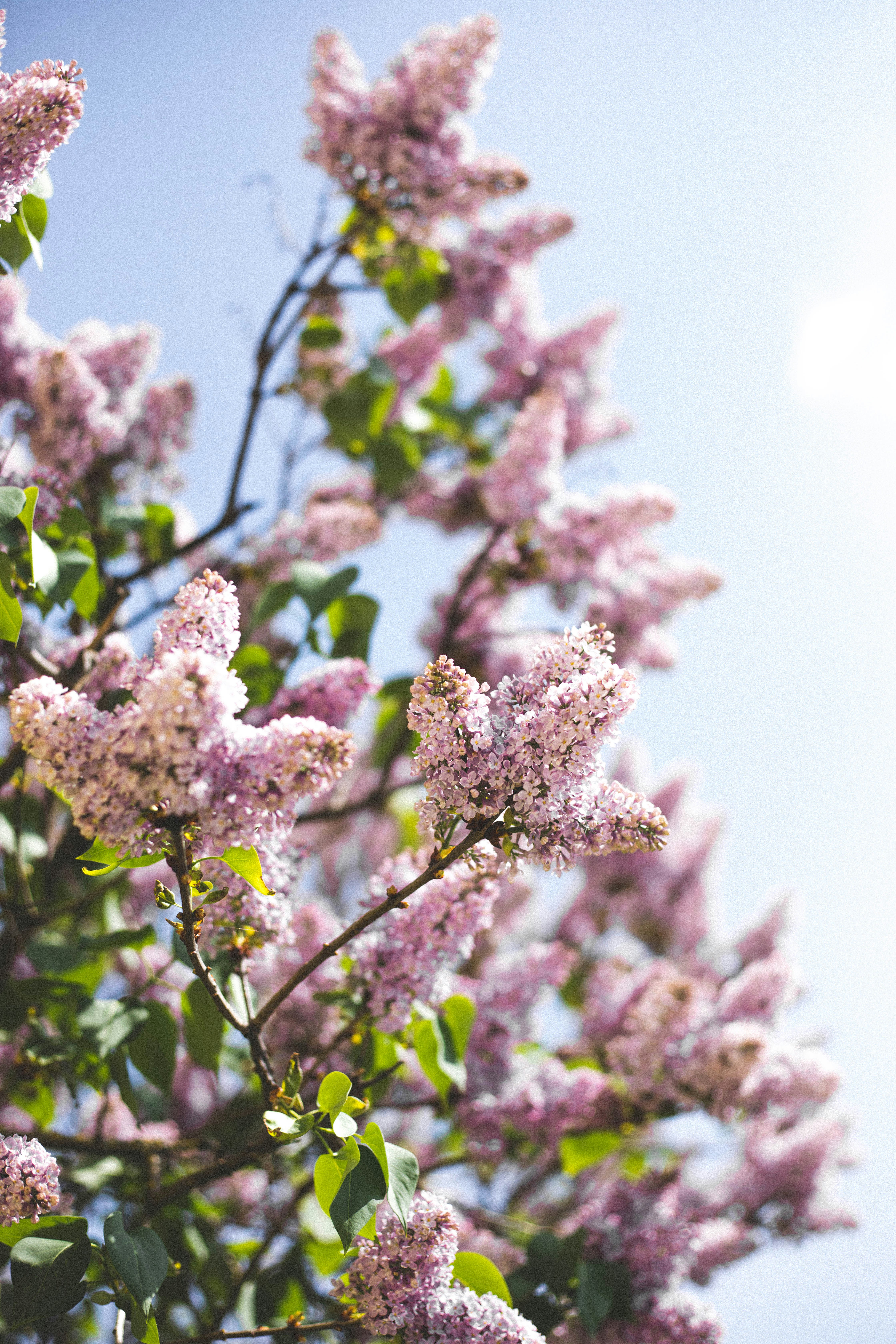 花、树、植物、粉红、绿色、蓝色、明亮、杂乱、模糊、春天、色彩、夏天、森林、希望