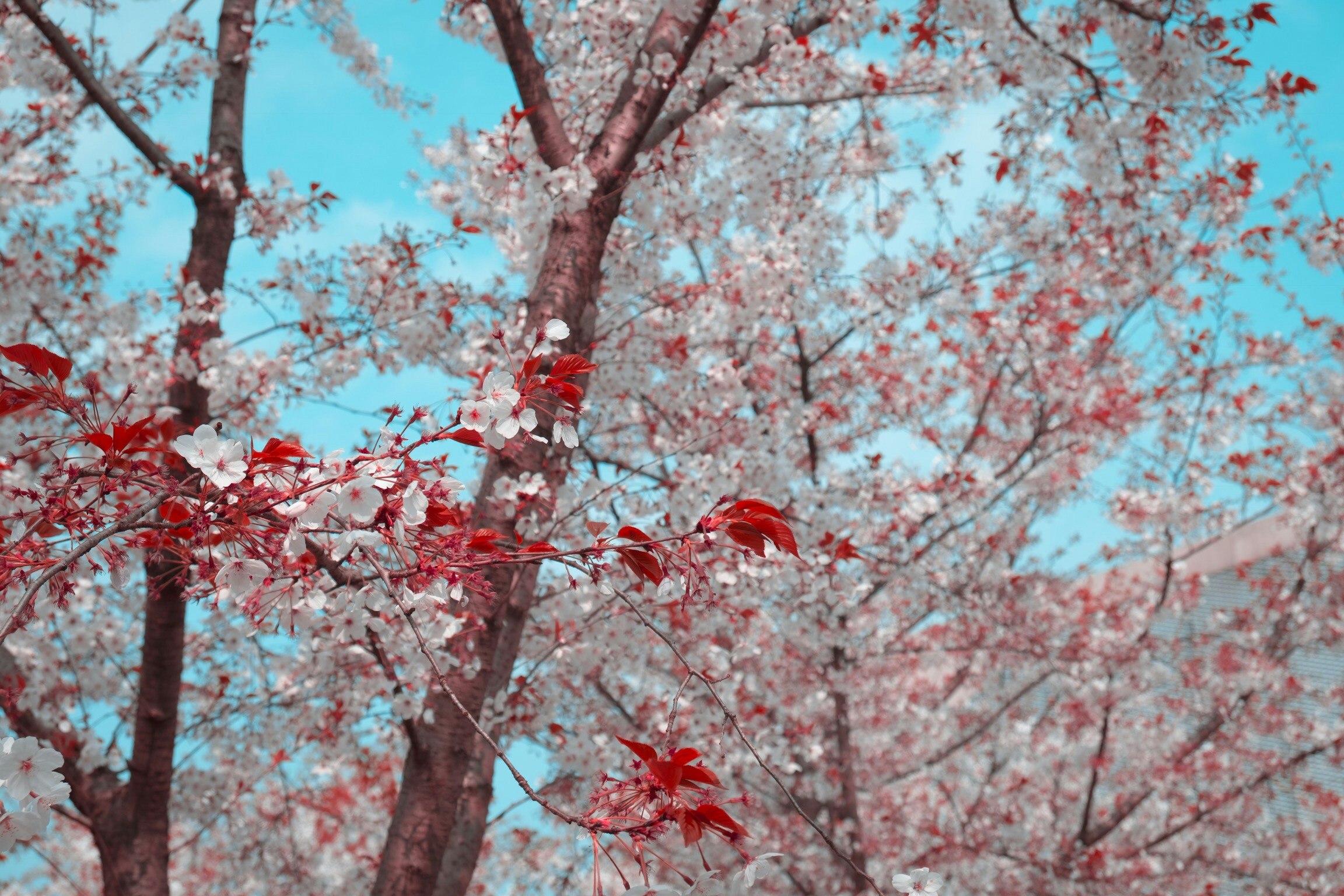 树木、森林、林地、花朵、花瓣、花朵、花朵、红色、花朵
