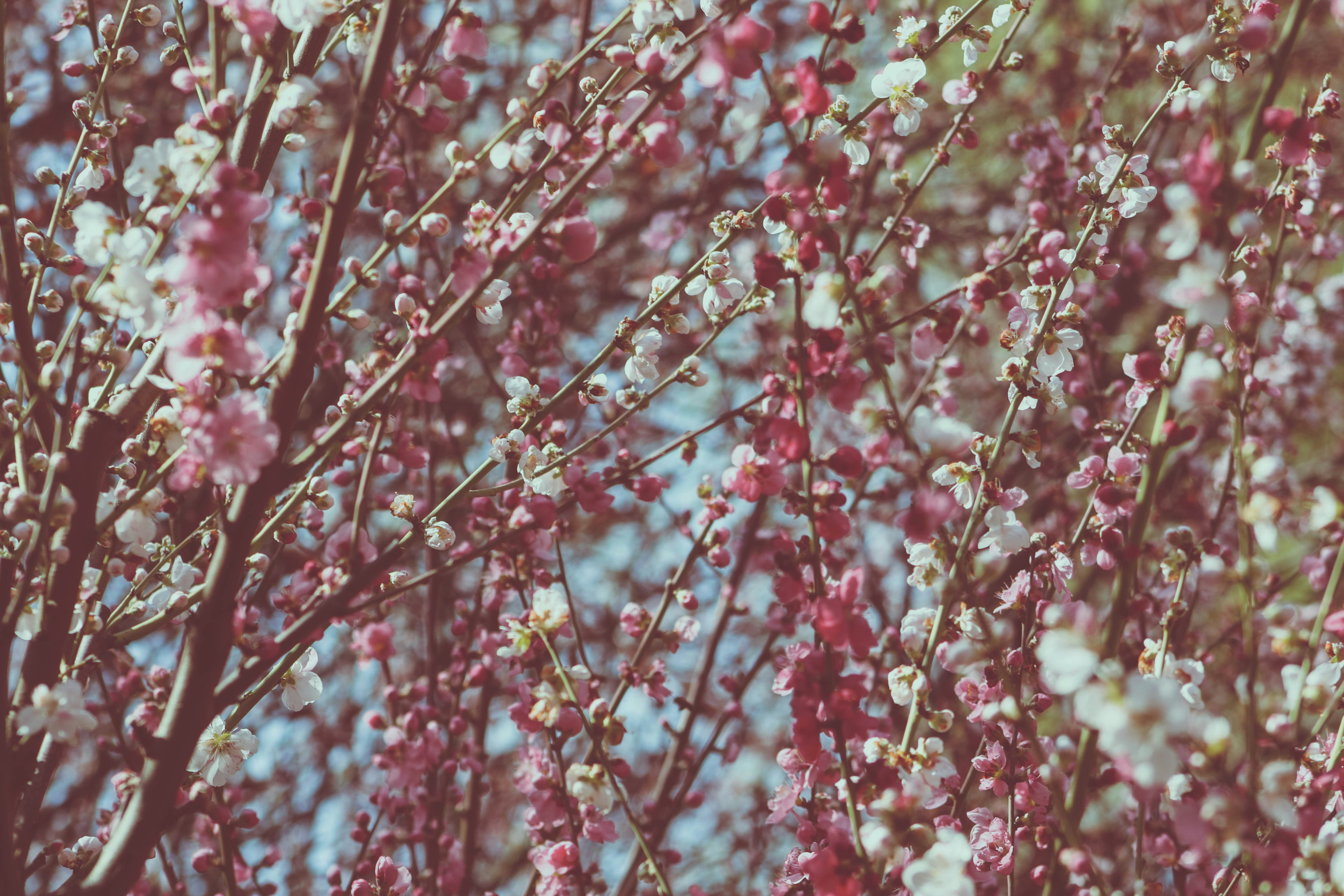 枝、树、樱桃树、樱花、花、花、植物、叶子、樱花树、春季、春季生活、花、小枝、天空、大自然、户外、蓝天、粉红色