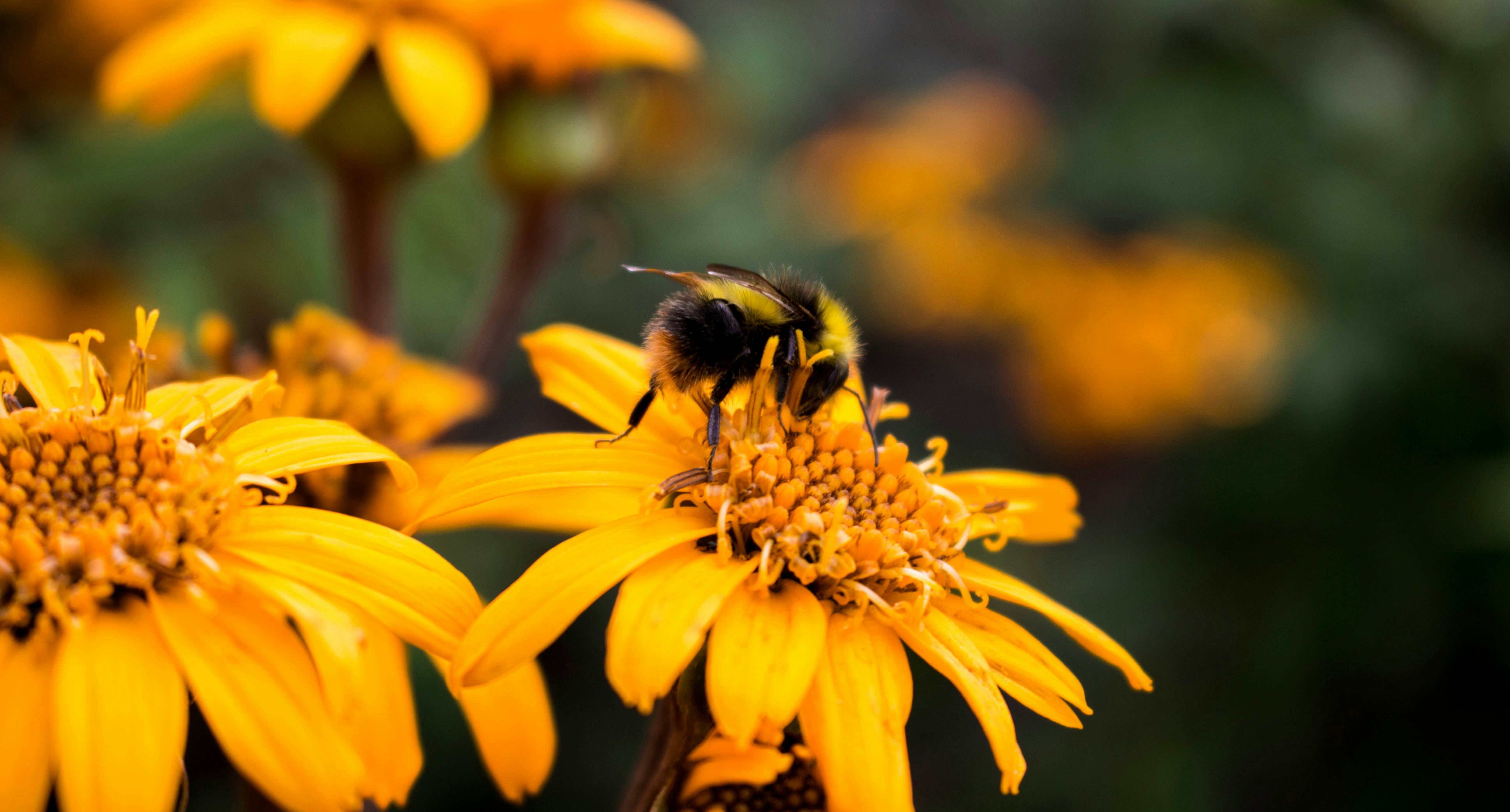 蜜蜂,花,晚餐,黄色,绿色,炎热,夏天