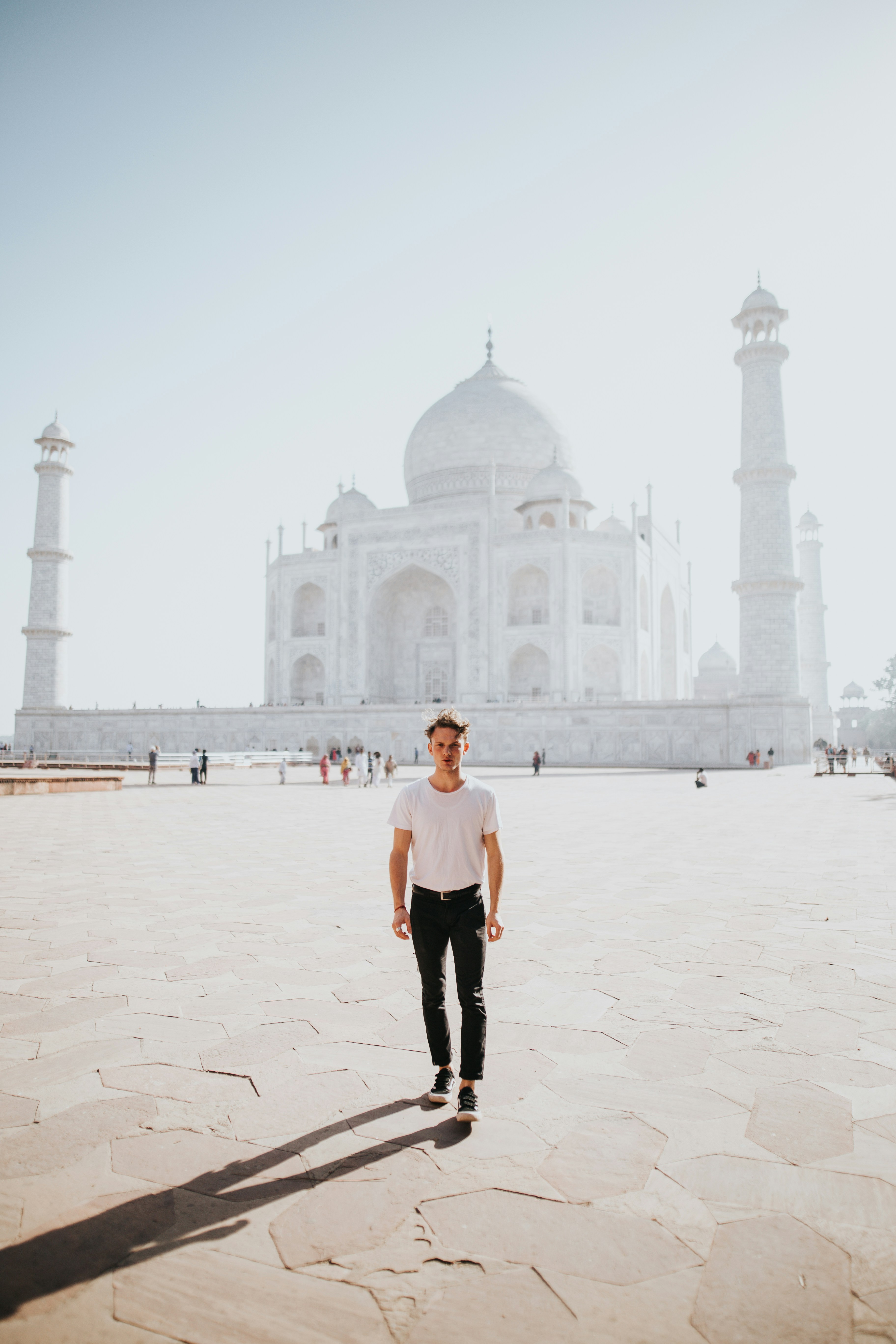 人,画像,人,建筑,旅行,冒险,文化,流浪,塔吉马哈尔,印度,太阳,光,影,步行,著名,地标,范,地球,世界,白色