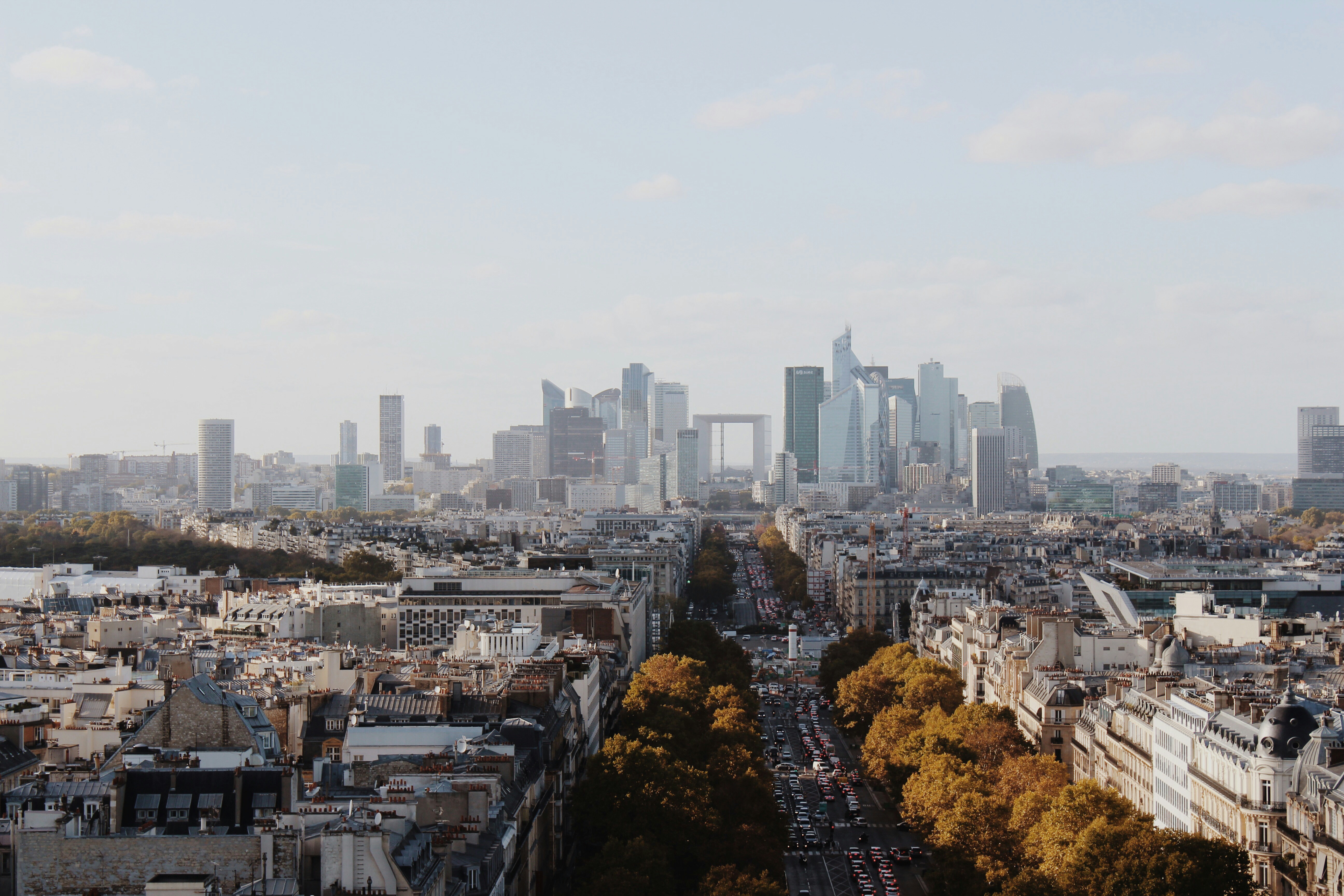 城市、城市线、城市天际线、天际线、摩天大楼,从上面看,俯瞰、树木、公路、天空、阴影、高度、建筑、法国、巴黎、探险、旅游、建筑、建筑、人