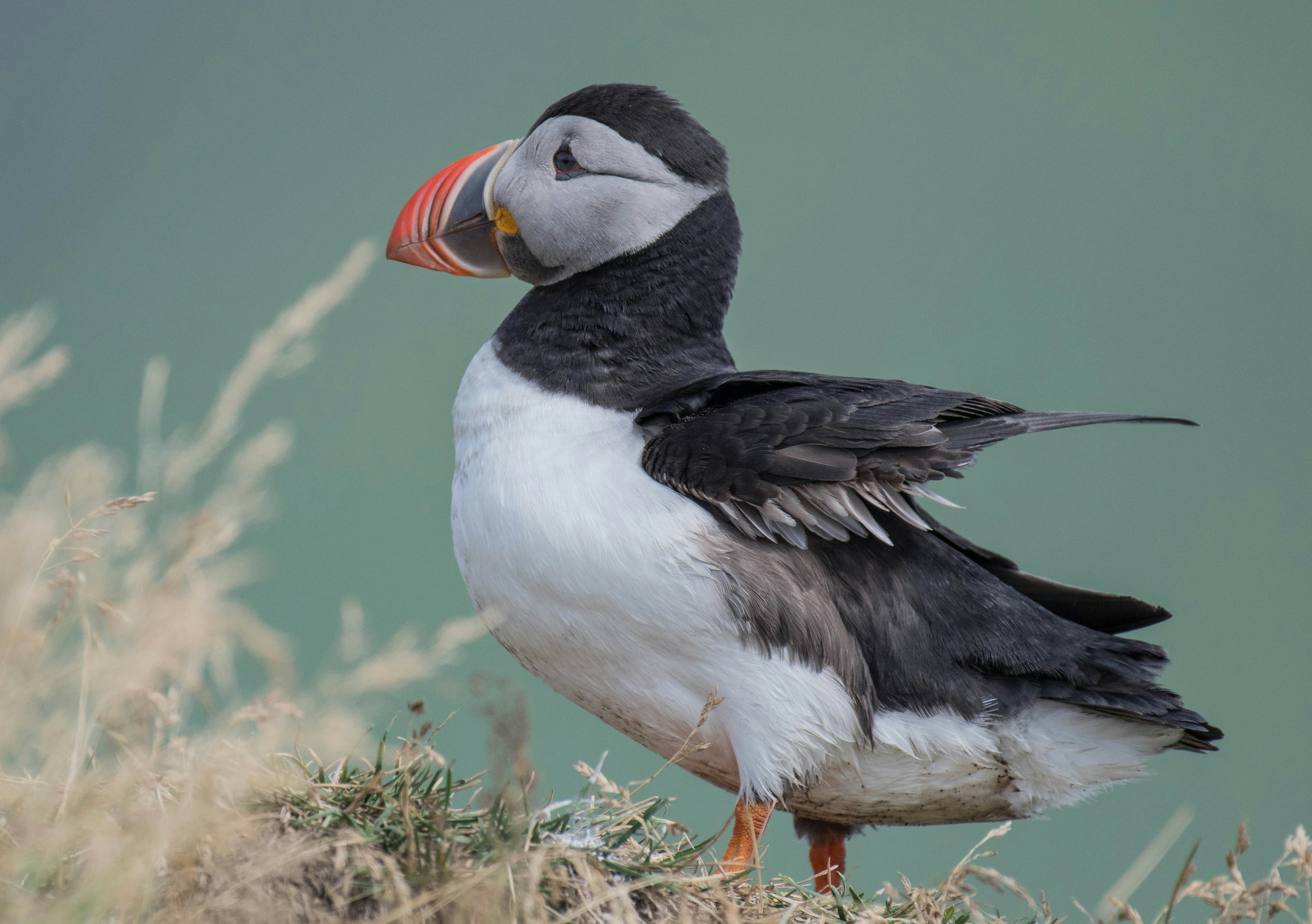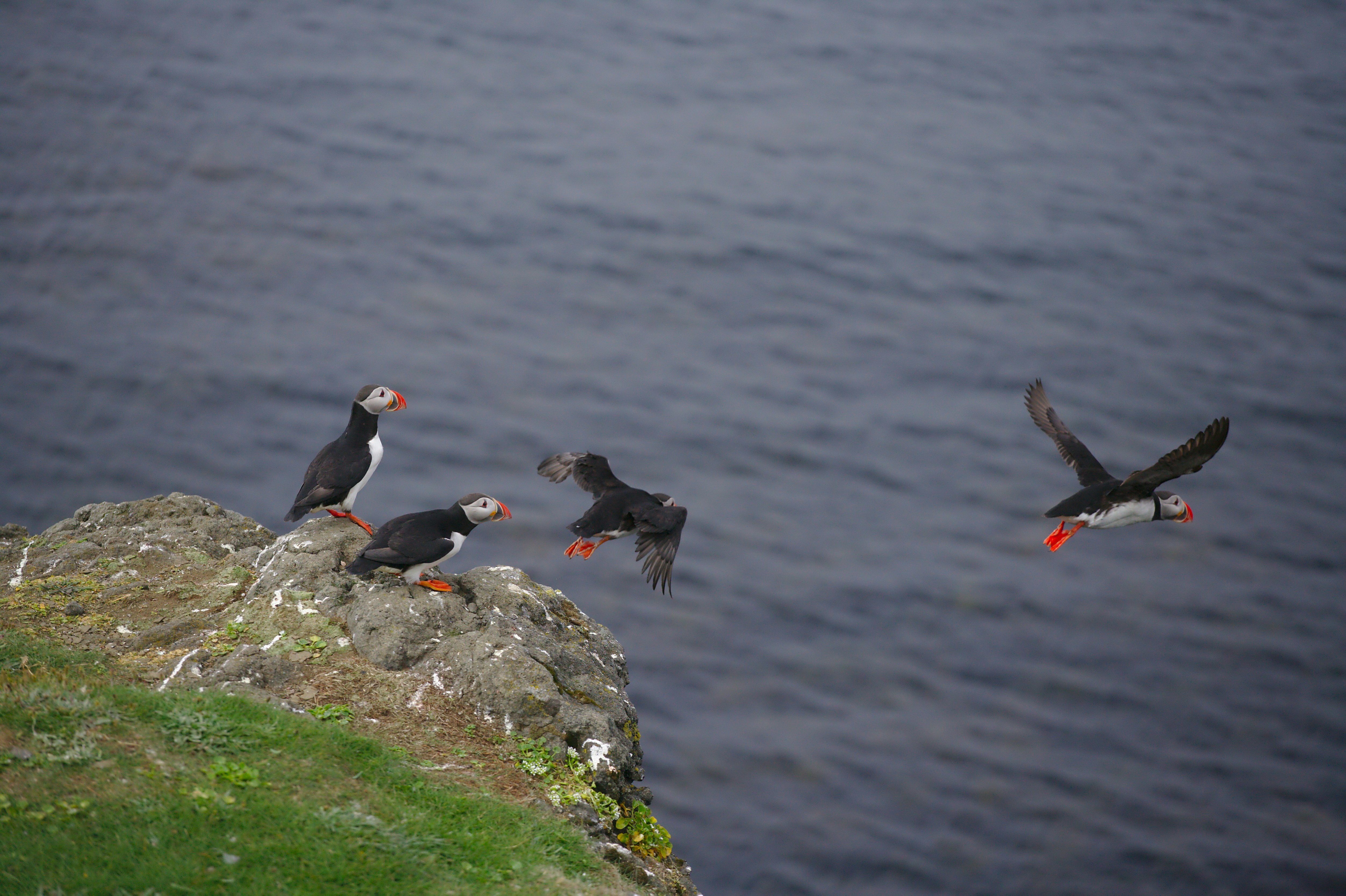 鸟,悬崖,飞翔,苍蝇,海雀,岩石,野生动物,海边,水鸟,草,海,水,海洋,翅膀,冰岛,自然,户外,巨石,橙子