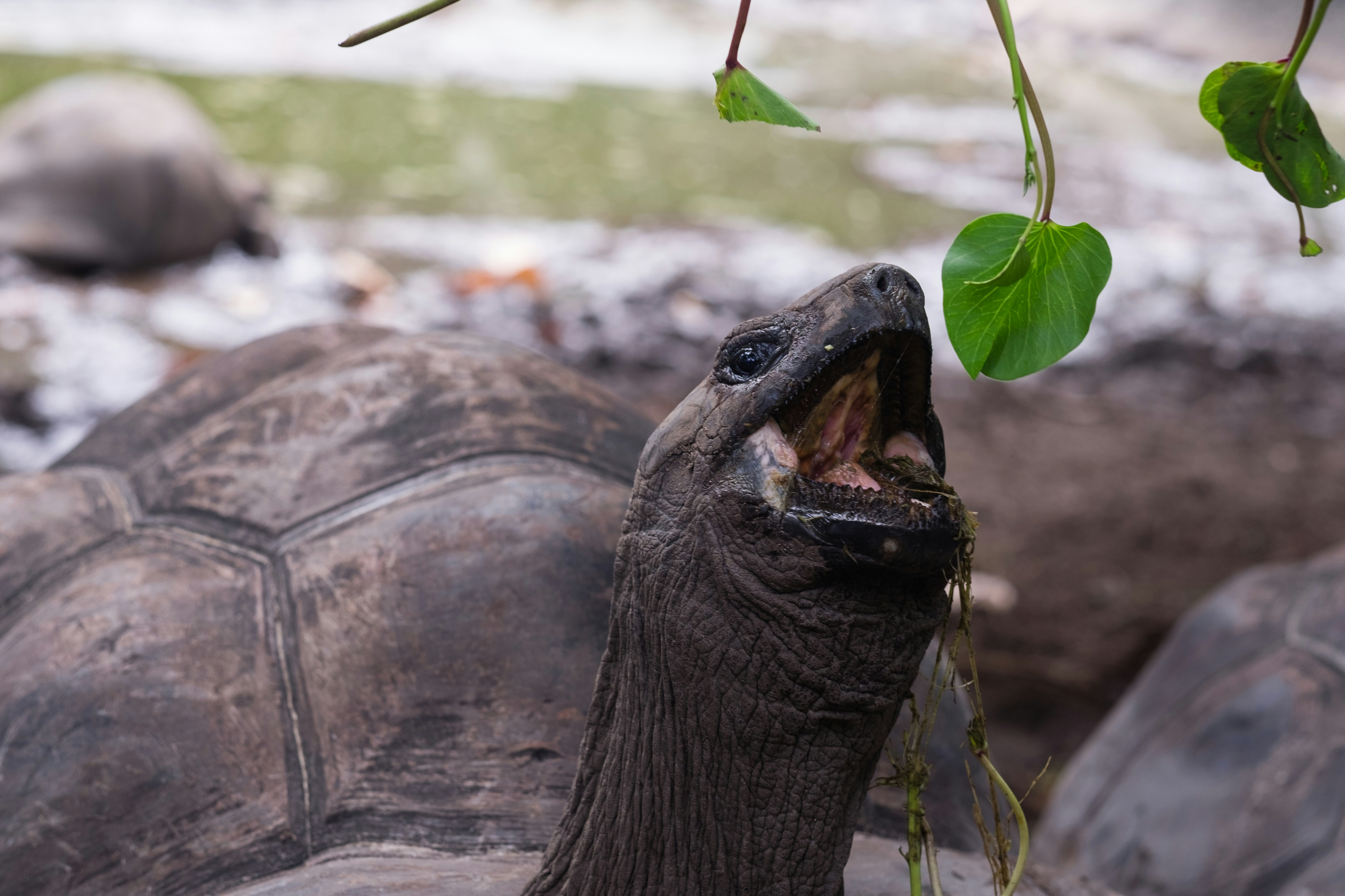龟、食、叶、张口、外、绿、灰、扭、自然、塞舌尔、龟