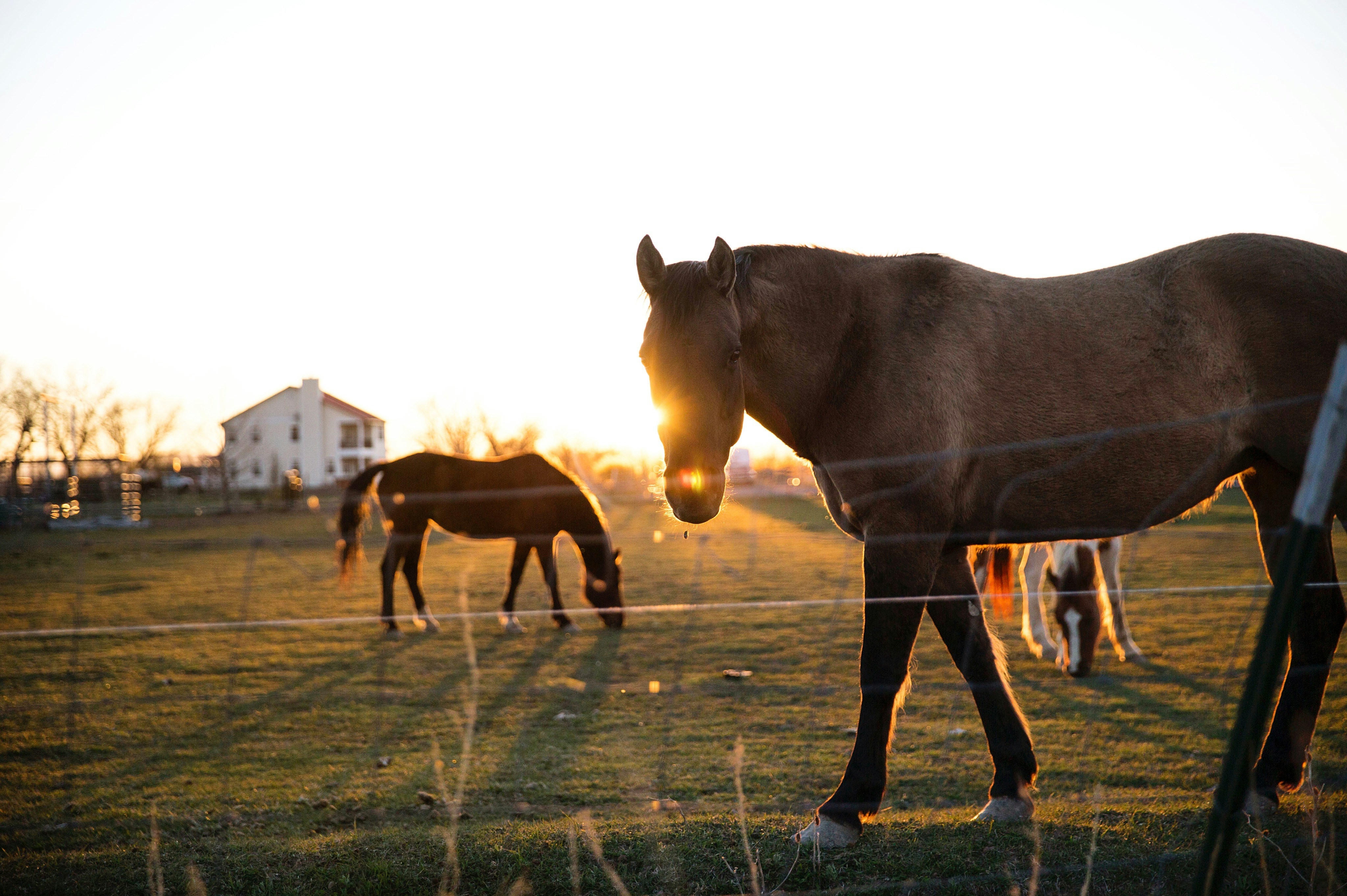 驴子、田野、毛皮、农场、马、农田、驴、光、美、云、森林、天空、树