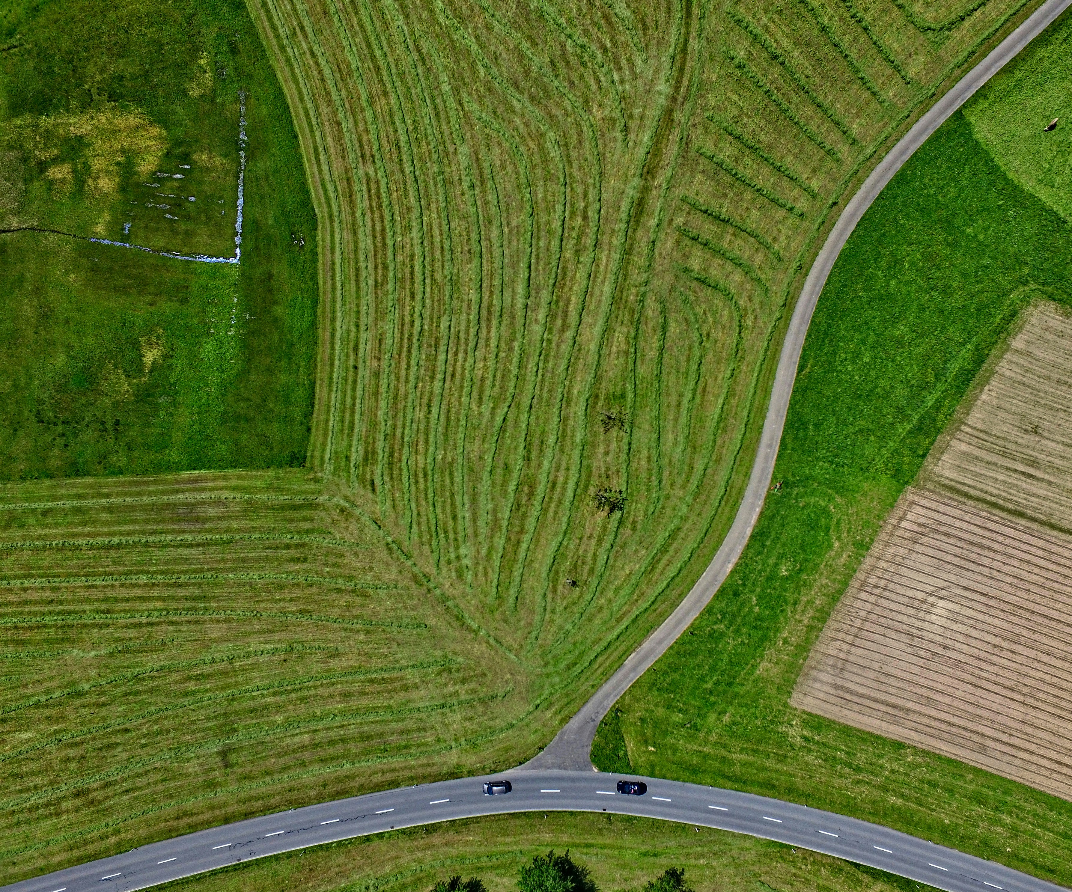 道路、空中、田野、鸟瞰、路线、纹理、沟槽、水、DCI、文化、无人机、曲线