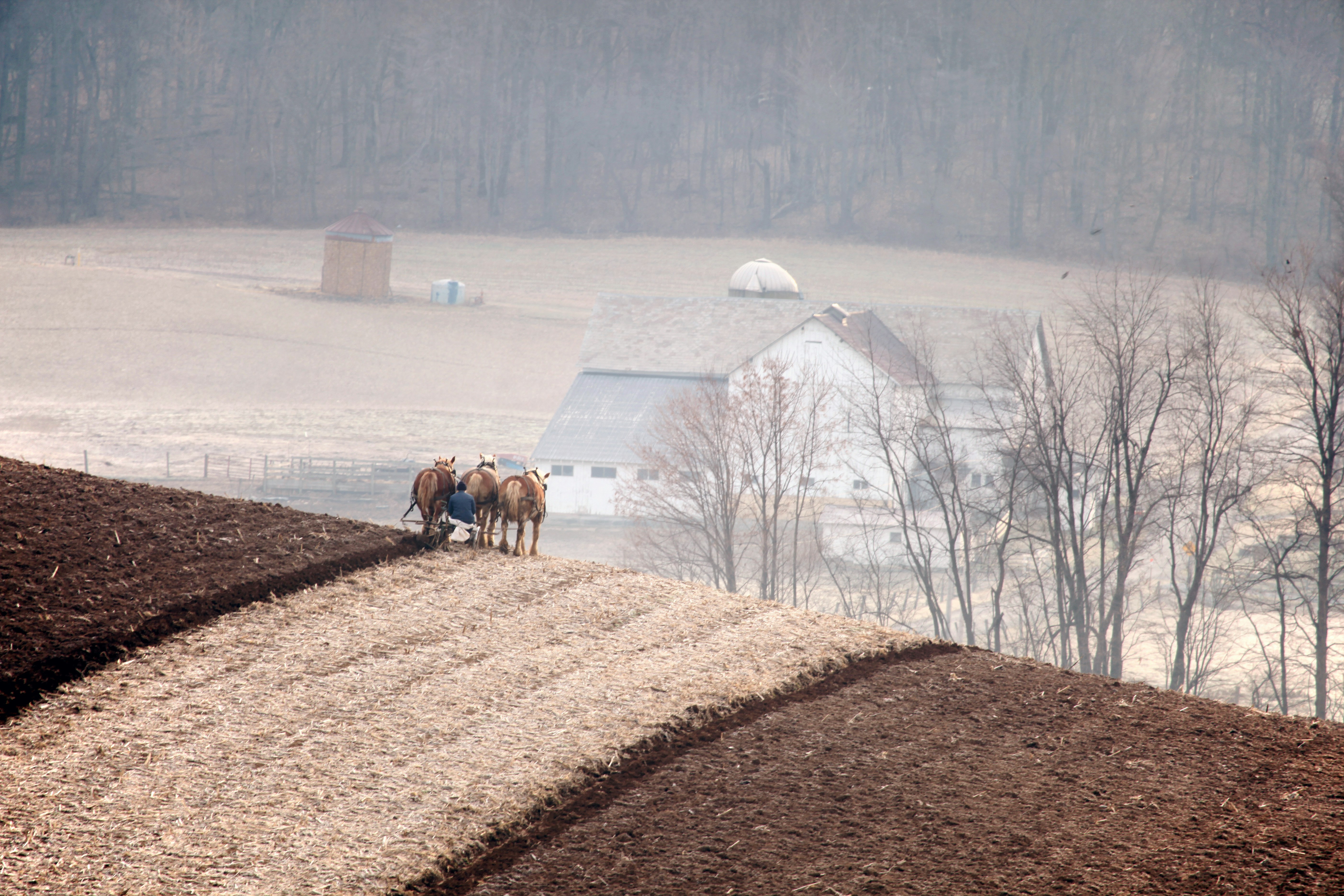 农民、茅屋、乡间、马、凉亭、劳动、劳动节、劳动、耕种、耕种、农田、雾、雾、雾、雾、多雾的乡村