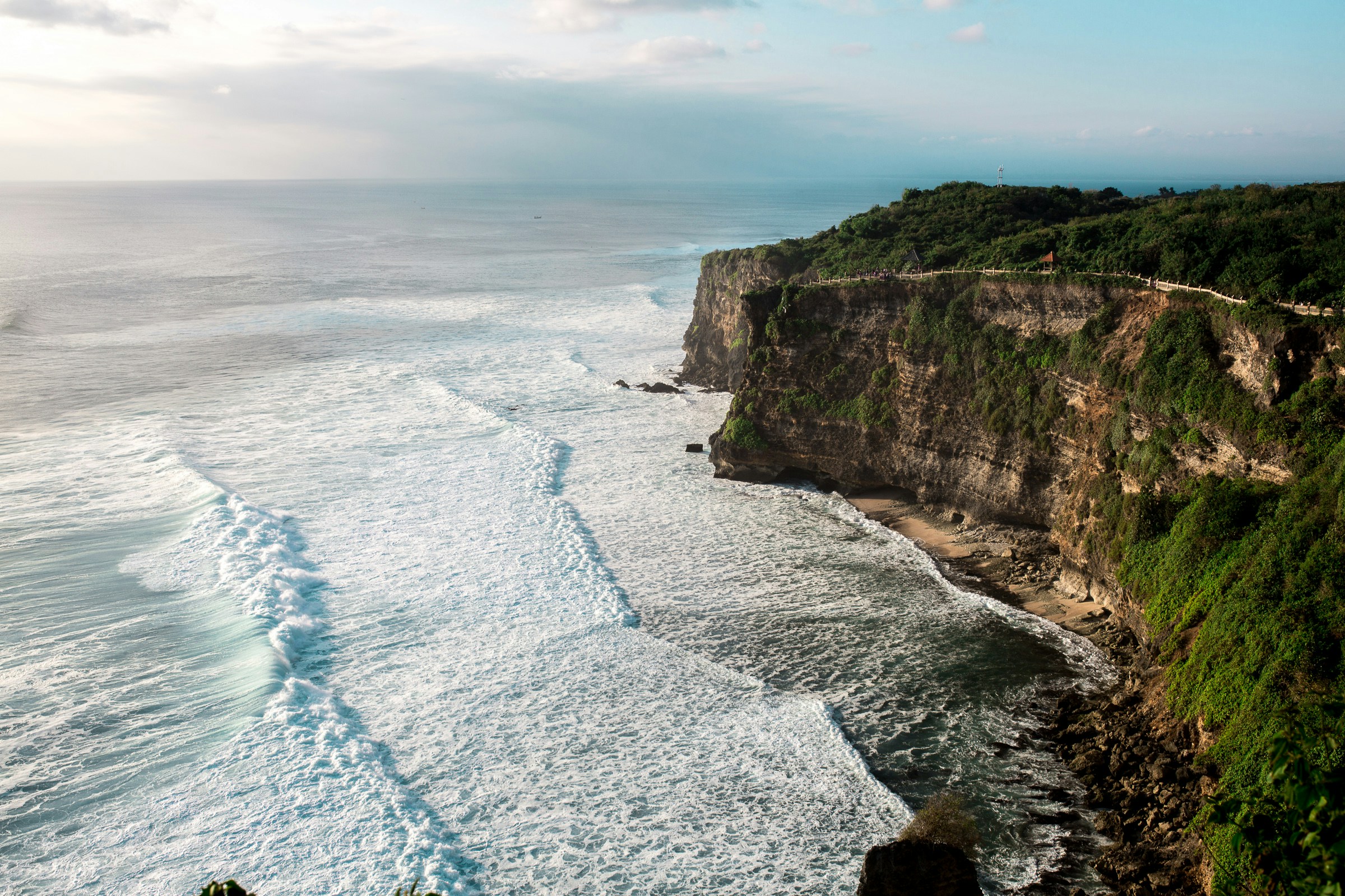 悬崖,海洋,天空,云层,海岸,波浪,山脉,树木,户外,海洋,瓦特,奥克塔卡多,摄影师,巴厘