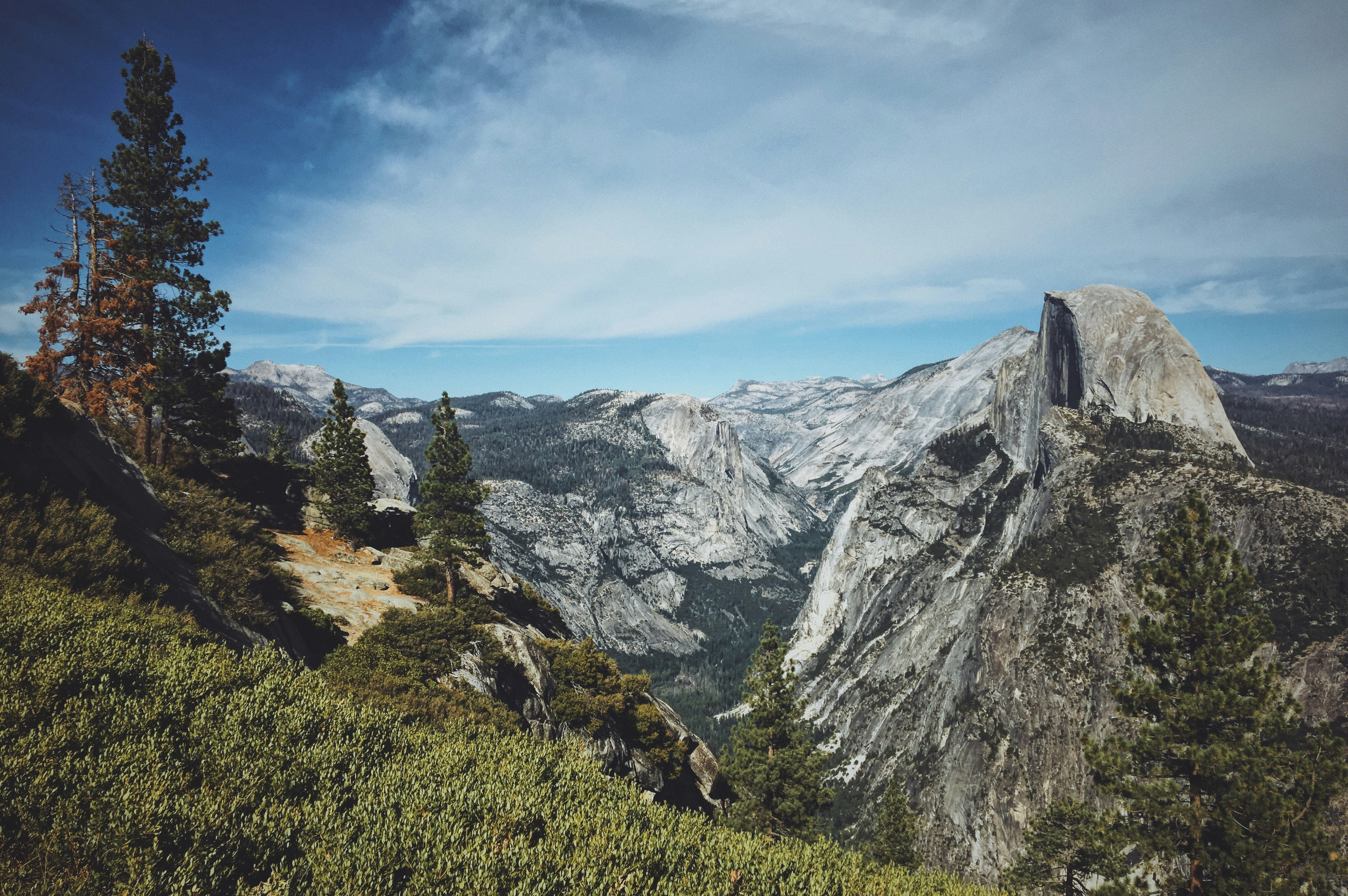 山、森林、天空、树木、峡谷、山谷、峡谷、峡谷、峡谷、约塞米蒂、半圆顶、户外、风景、史诗、远足、雄伟、白天、锍、攀岩、泥土、采石、大型