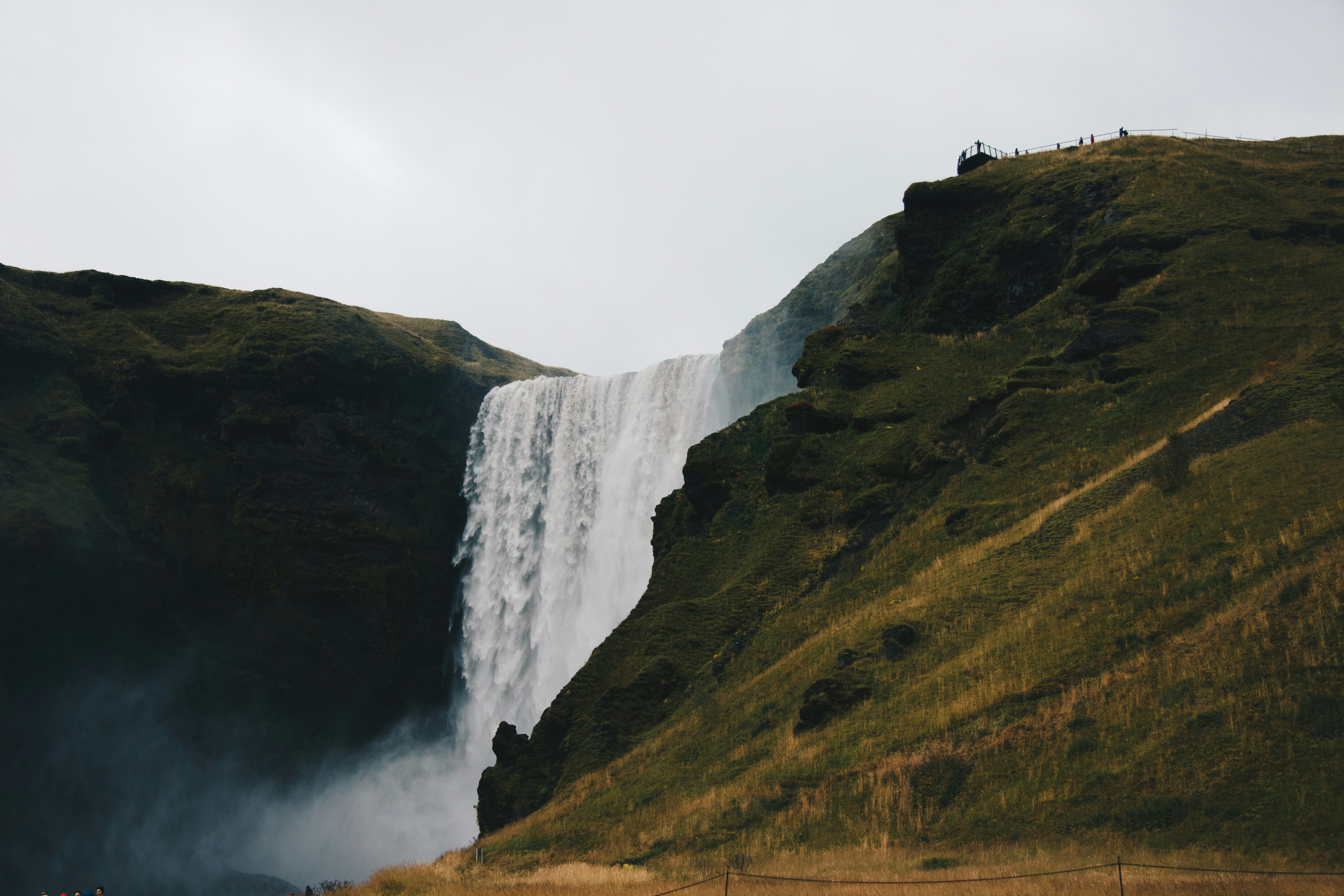 waterfall,cliff,water,river,stream,field,grass,green,outdoors,wanderlust,explore,adventure,iceland,skÓgafoss