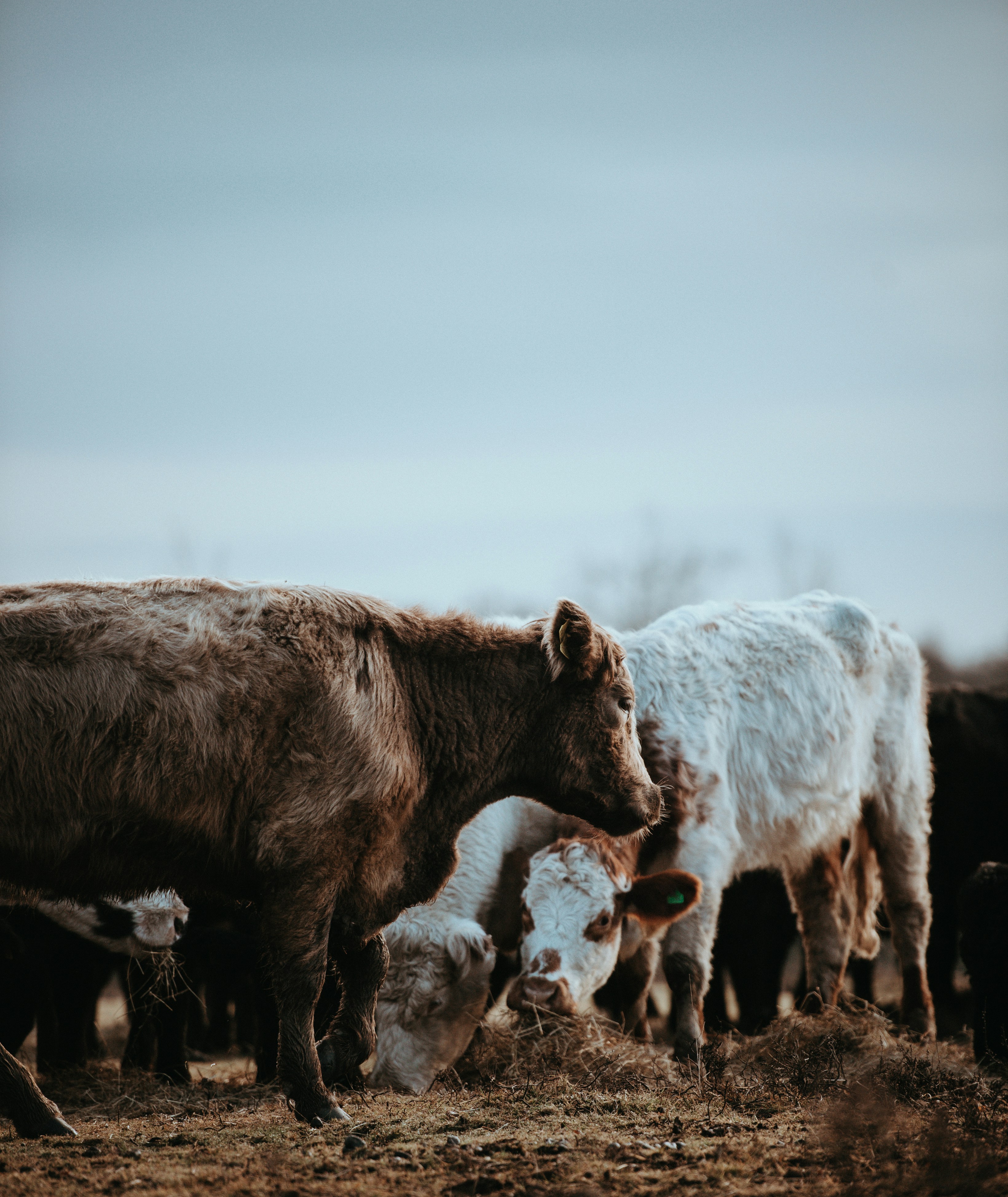 牛,牛,干草,牧群,自然,农业,牧场,牧场,草地,喜怒无常,早晨,寒冷,真实