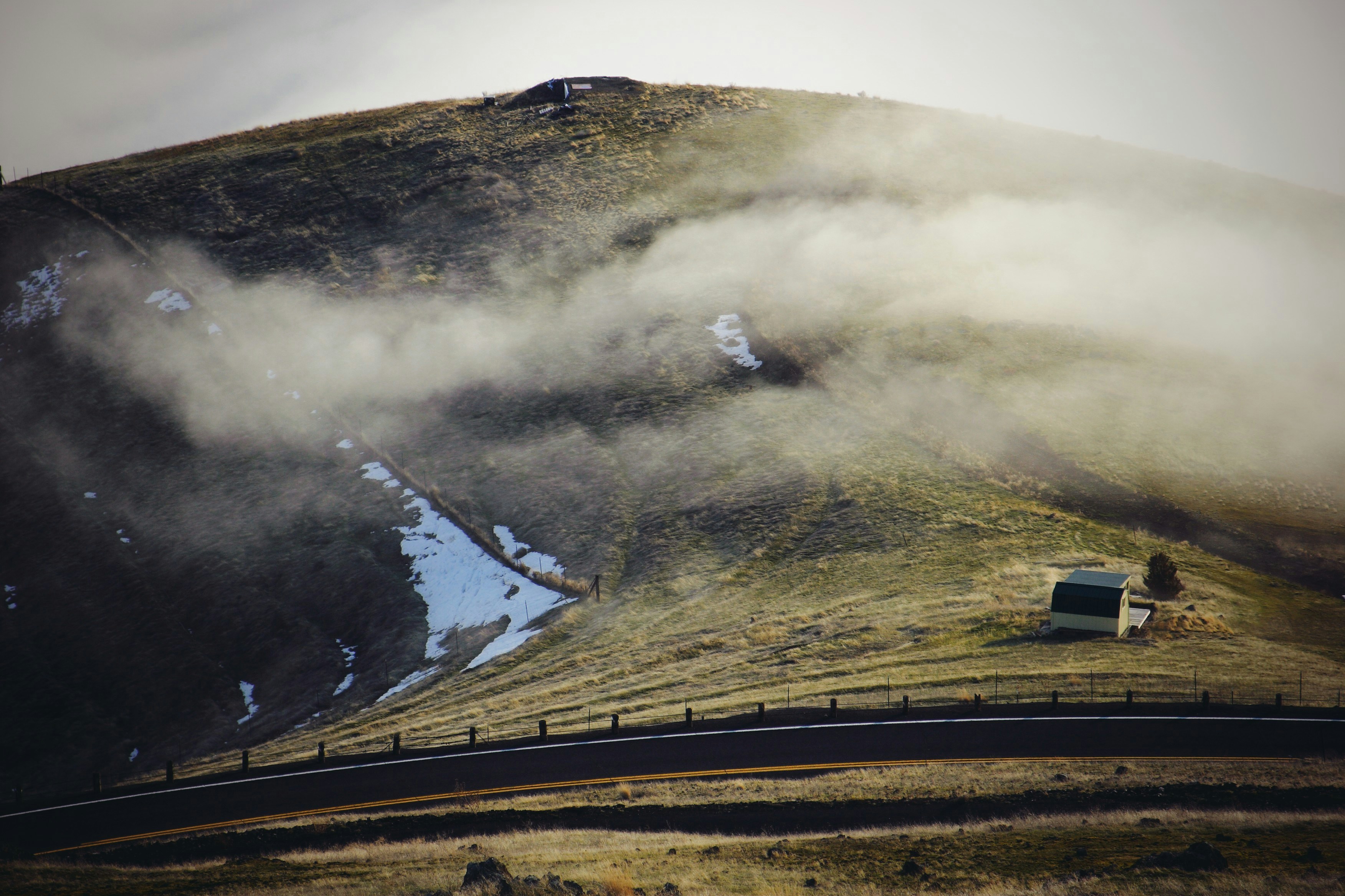 小屋,小屋,日落,黄昏,田野,草地,山,阳光,房子,住所