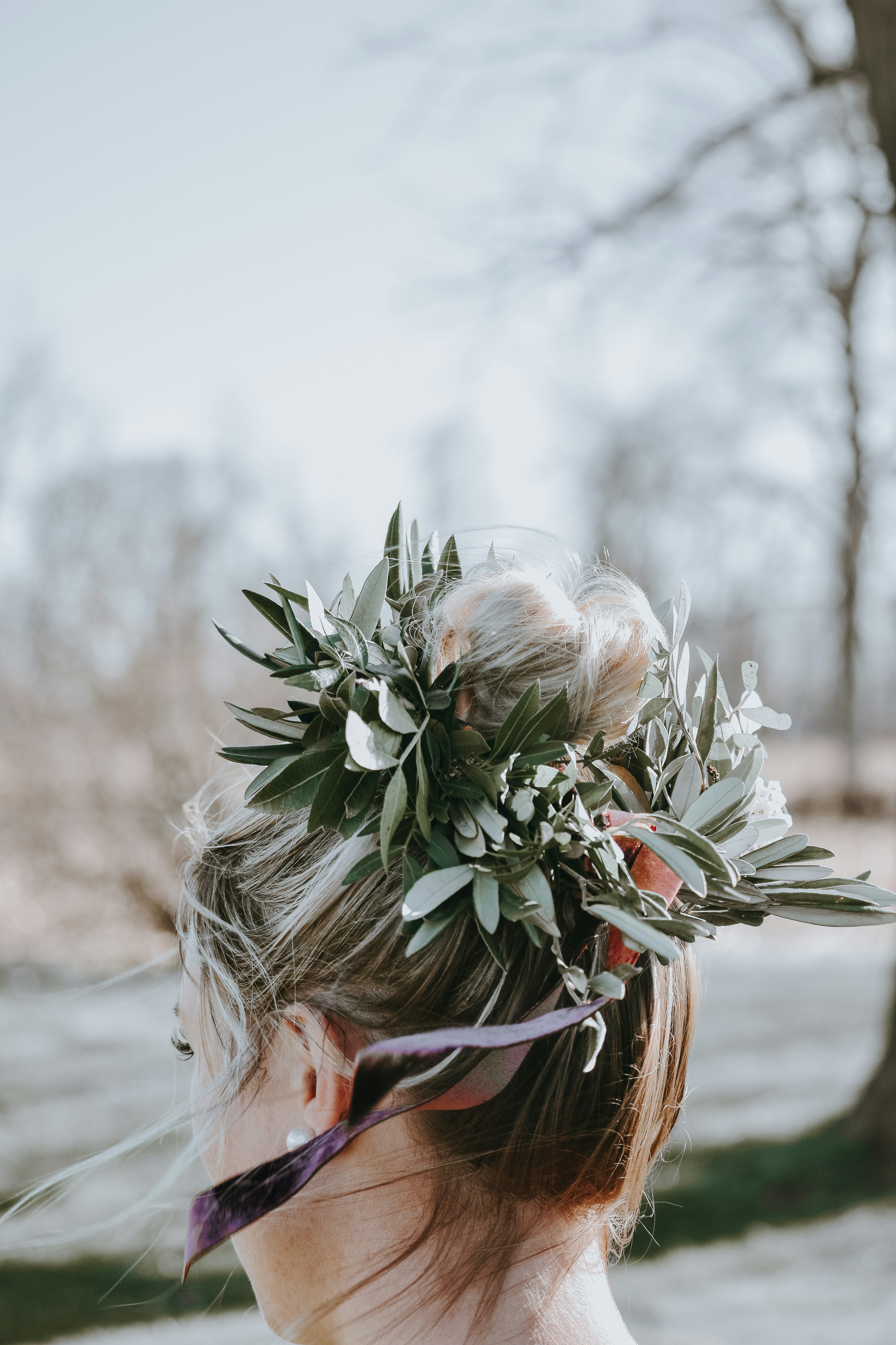 花,金色,花,女人,绿色,叶,冠,叶,自然,户外,户外,时尚,树木,花冠,绿色植物,绿豆,头,女孩,花环