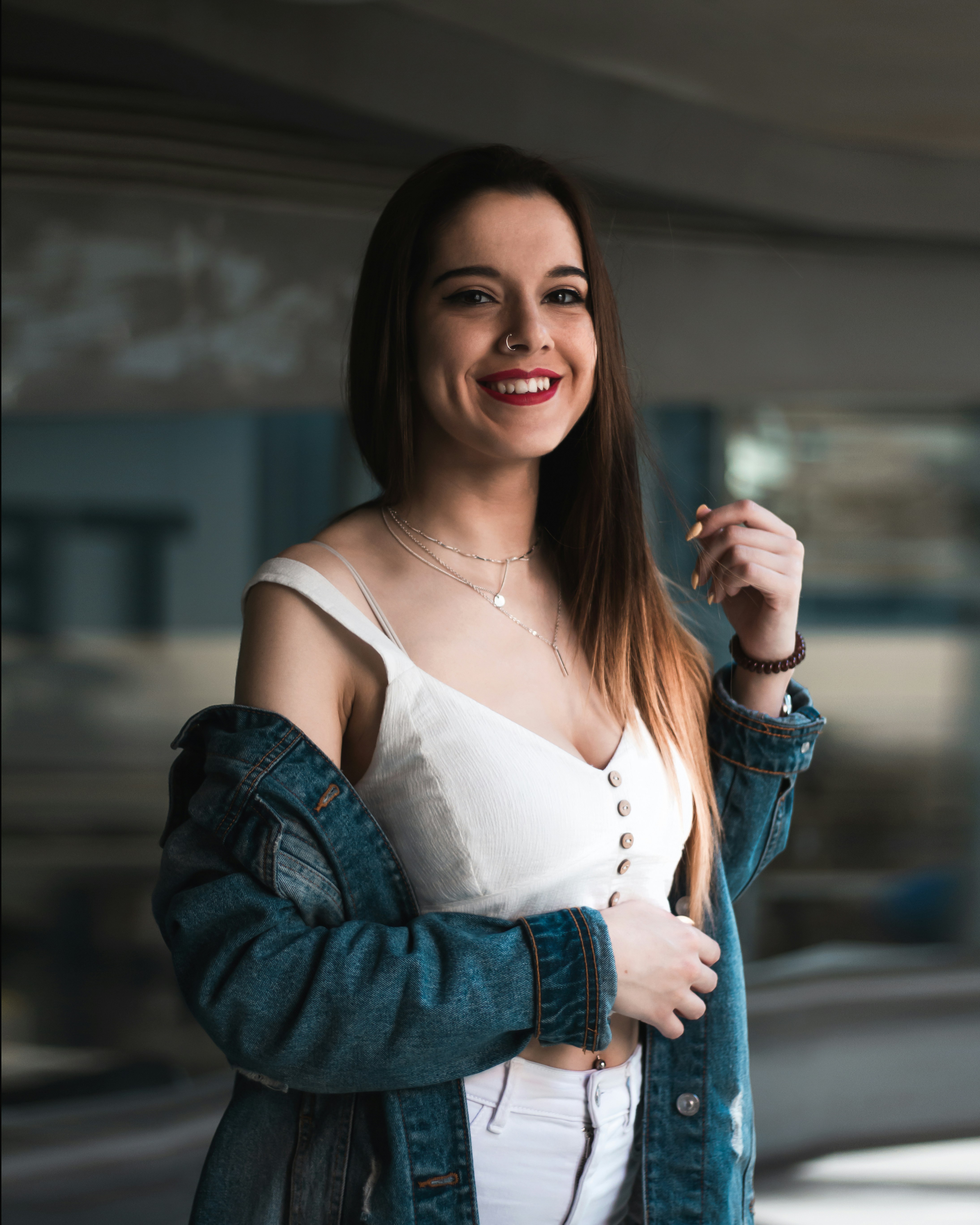 肖像,微笑,女人,女性,微笑,牛仔,牛仔服,长发,模特,时装,城市,城市,户外,摄影,头发,性感,眼睛,女孩