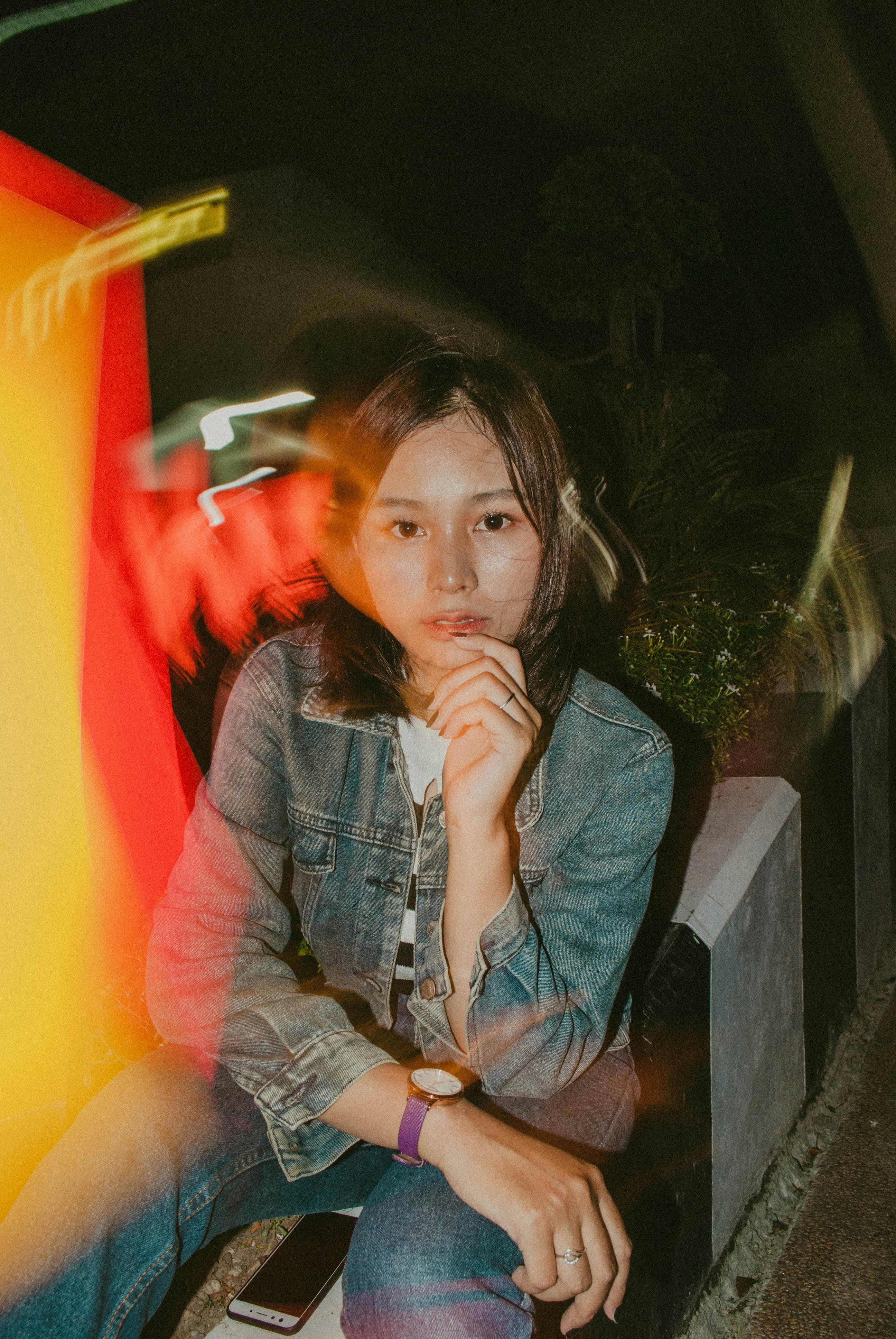 女人,人,光,夜,眼,看,户外,街,霓虹灯,保持,姿势,脸,手,爱,概念,女士,伟大,热,女孩,快门