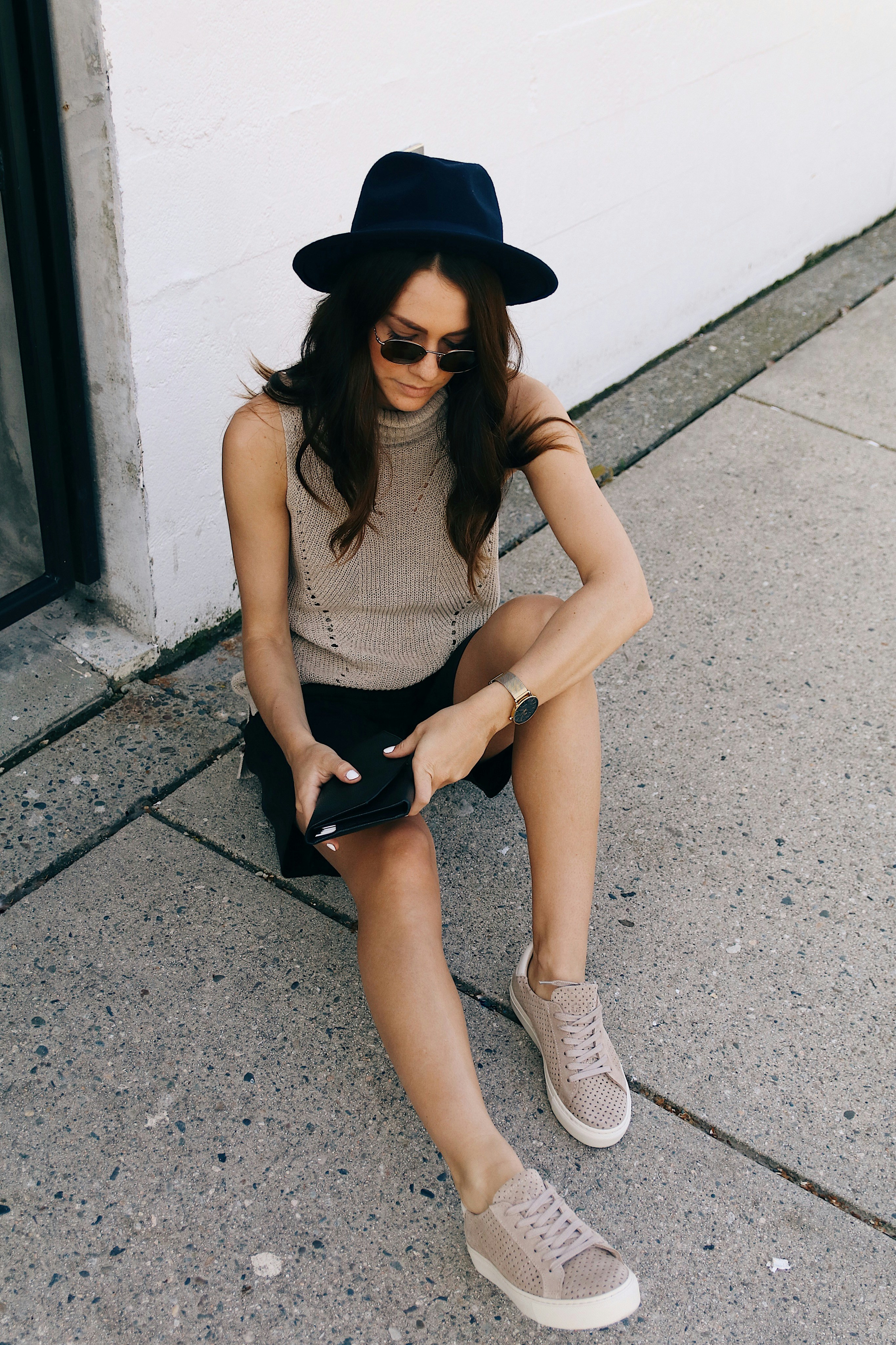 女人、女人、街道、道路、人行道、人行道、帽子、肖像、墙壁、模型、时尚、高加索、女孩、女性时尚、鞋子、棕色头发、太阳镜、款式、夏季时尚、夏季服装