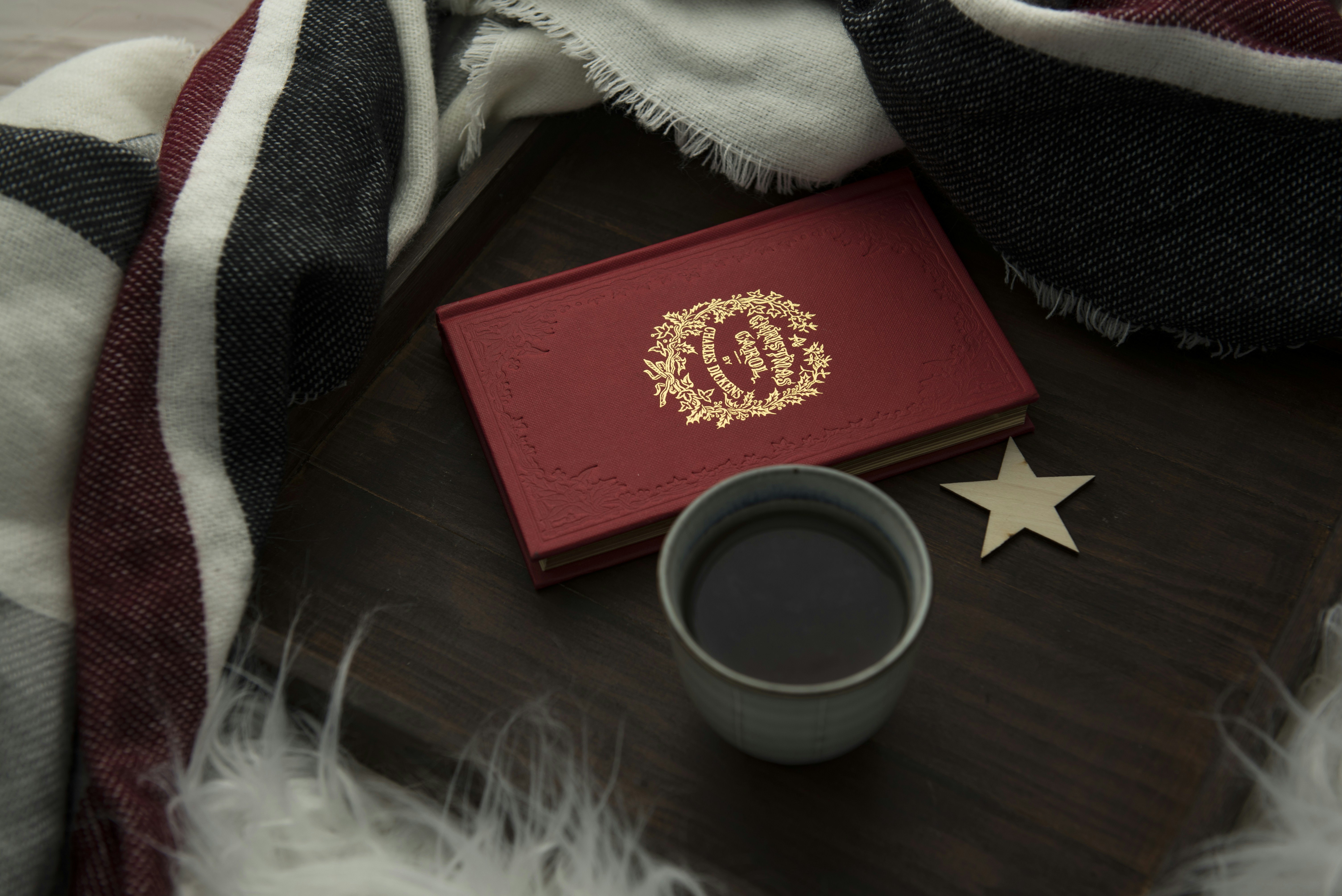 书,红,星,杯,饮料,马克杯,桌子,木制,毛皮,JoaNakoSiksa,节日,XMA,圣诞节,放松,温暖,托盘,木材,茶